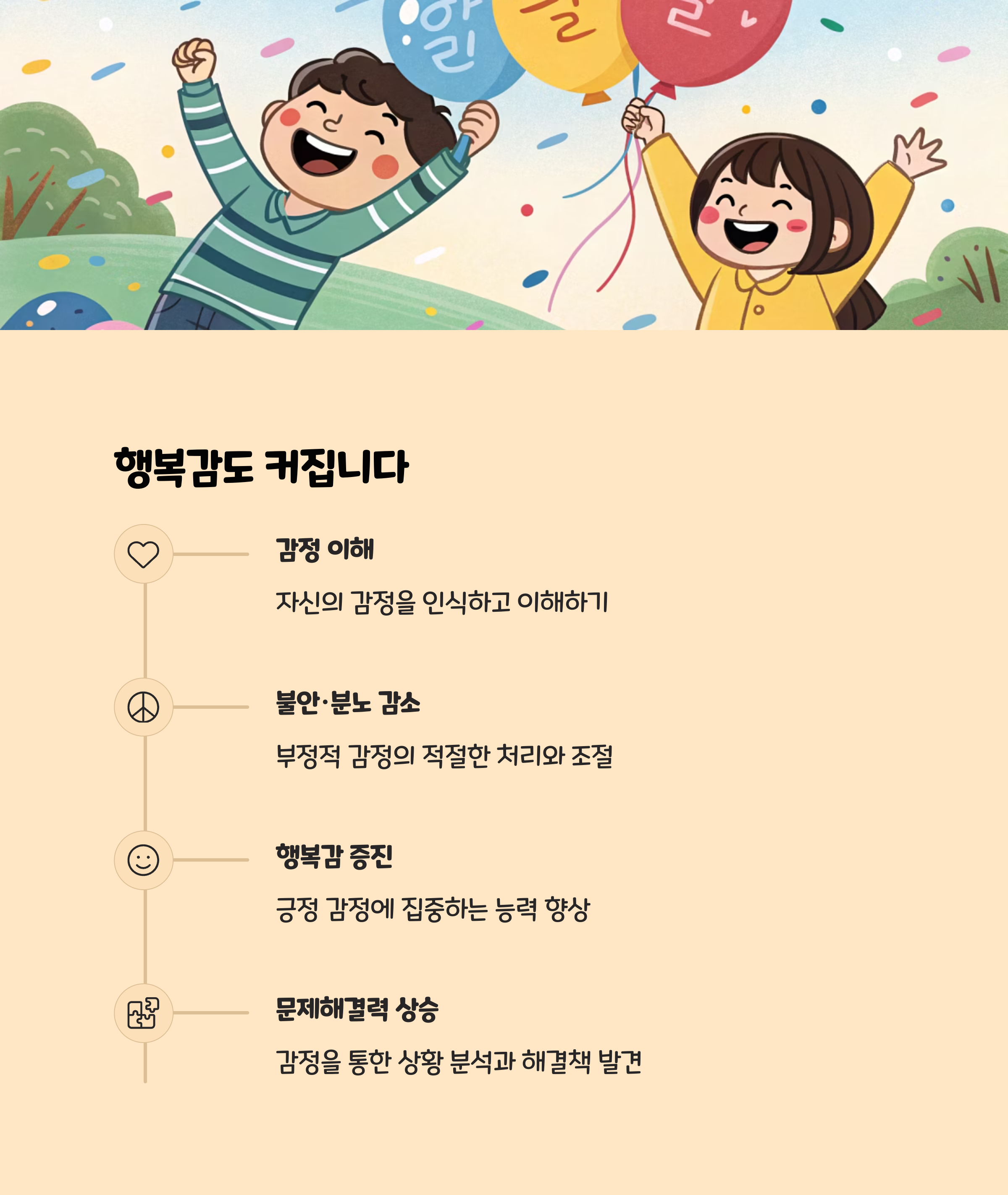 - 유아기부터 EQ를 키우면, 성인이 되었을 때 더 건강하고 행복한 삶을 영위할 가능성이 높아집니다.
