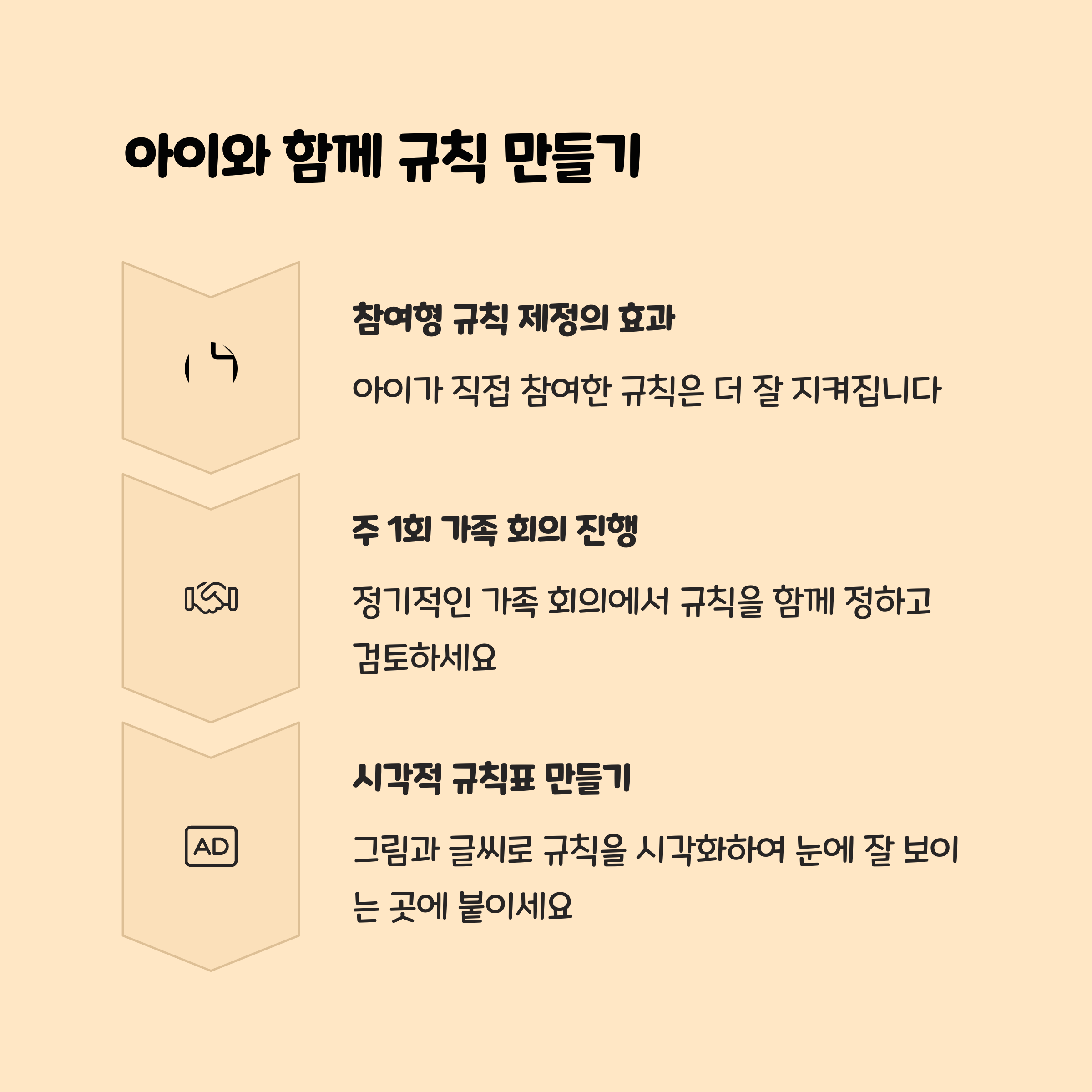 6세 아이는 자신의 의견을 어느 정도 표현할 수 있습니다. 부모가 일방적으로 정한 규칙보다, 아이와 함께 약속을 정하면 책임감과 자율성이 자랍니다.