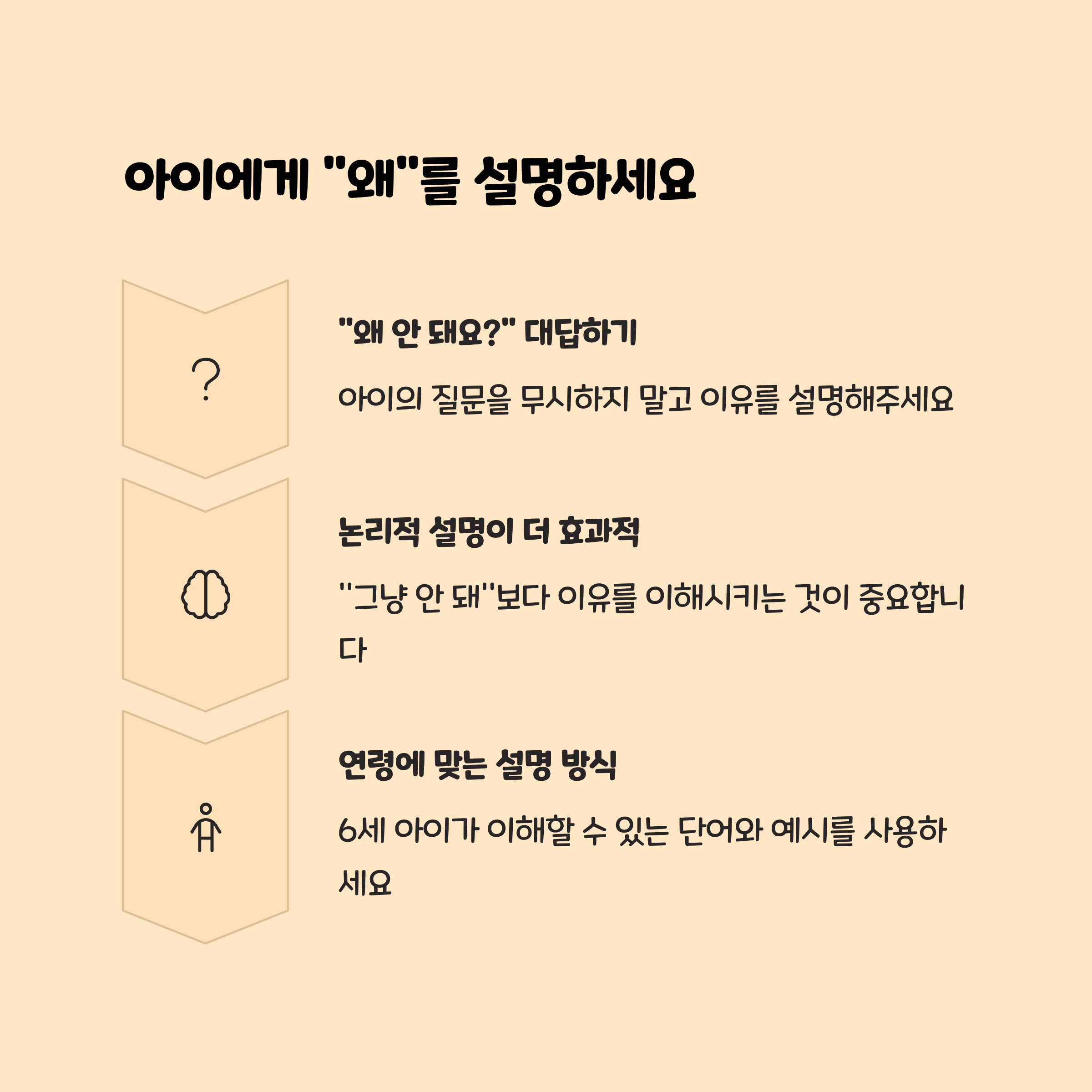 “하지 마!”라고만 말하지 말고, 왜 안 되는지 구체적으로 설명하세요. 예를 들어 “콘센트를 만지면 위험해. 전기가 흐르기 때문이야”처럼 아이가 이해할 수 있도록 말해주는 것이 중요합니다.