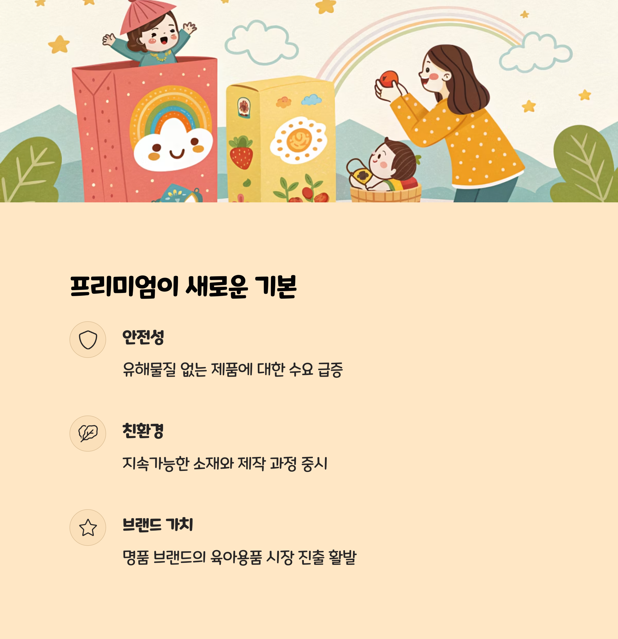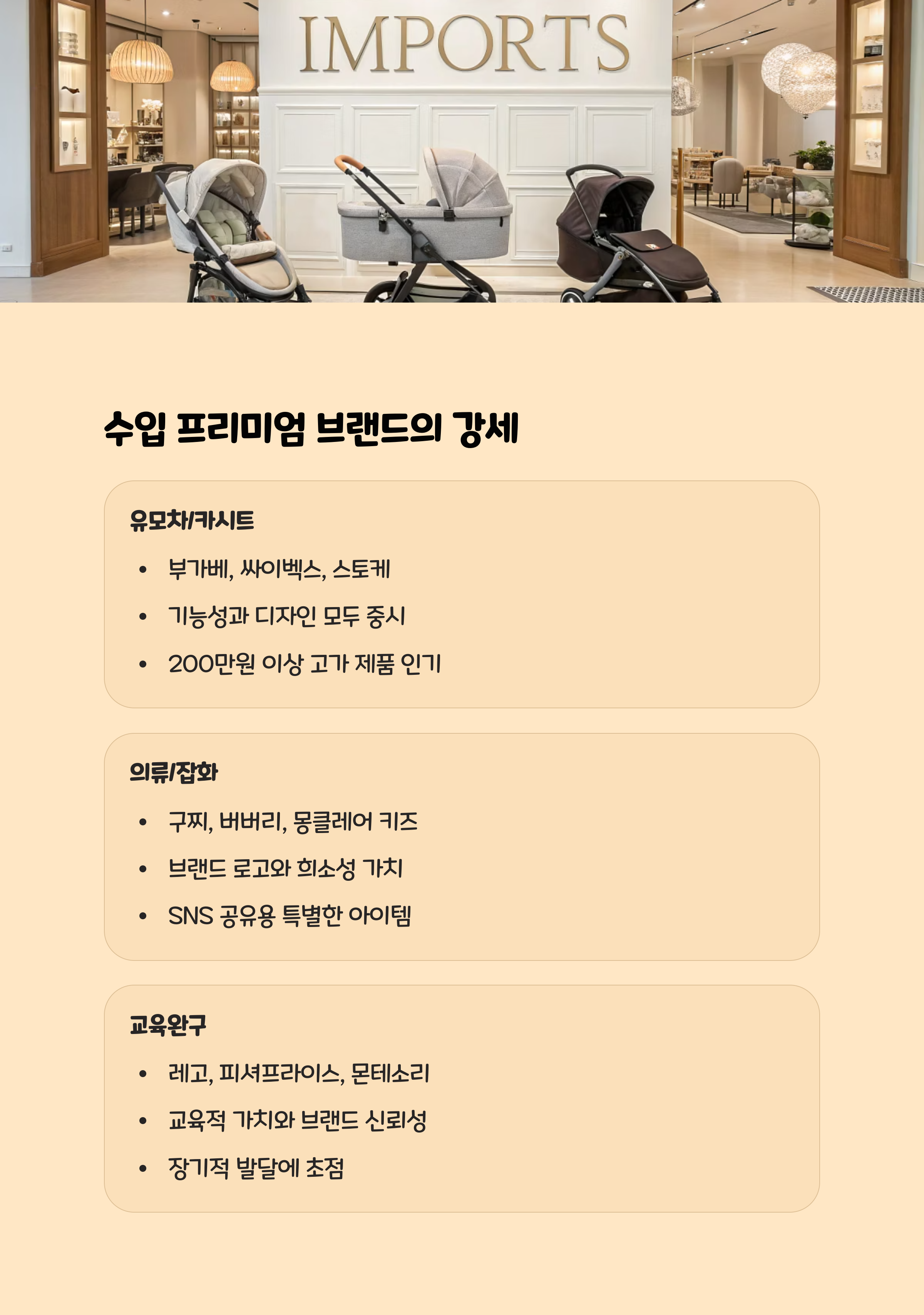 프리미엄 유모차, 카시트, 이유식 등 고가 제품군의 매출이 꾸준히 증가하고 있습니다.
