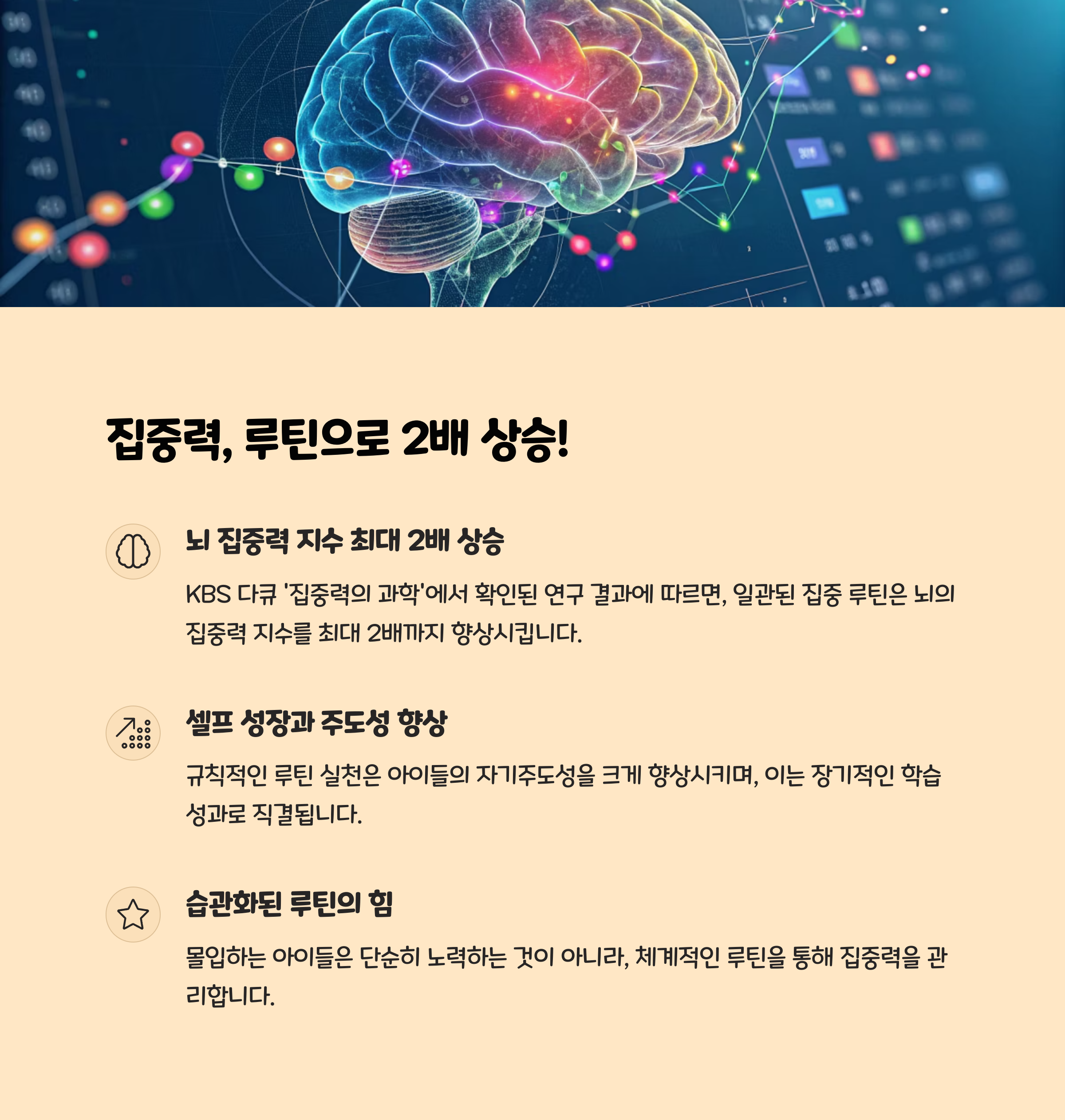 공부에 몰입하지 못해 고민하는 부모님과 학생들에게, 실제로 몰입하는 아이들의 ‘공통 루틴’을 분석해 실질적인 해결책을 제시합니다. 단순히 오래 앉아 있는 것이 아니라, 집중력을 극대화하고 자기 주도성을 키우는 루틴에는 분명한 공통점이 있습니다. 최근 다양한 사례와 전문가 조언, 실제 데이터에 기반해 몰입하는 아이들의 5가지 핵심 루틴을 구체적으로 소개합니다.