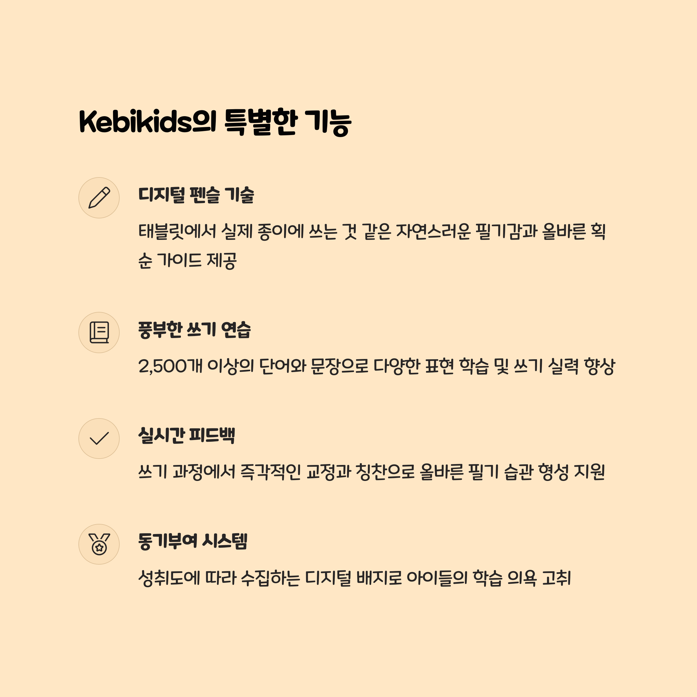 • 주요 특징 : 문자·단어·발음 학습, 쓰기 기능, 태블릿 최적화