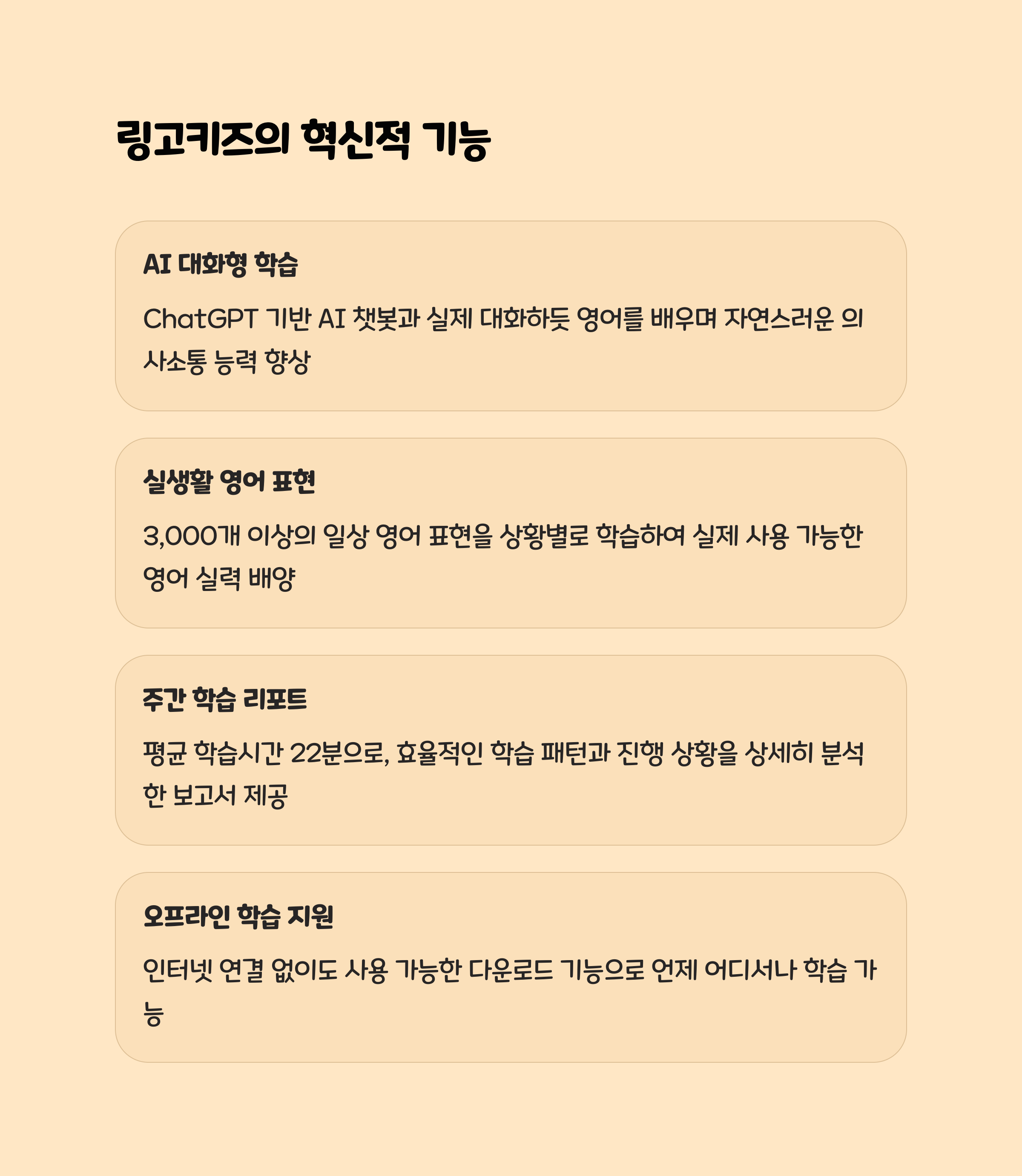 • 주요 특징 : 몰입형 영어 학습, ChatGPT 기반 대화형 콘텐츠