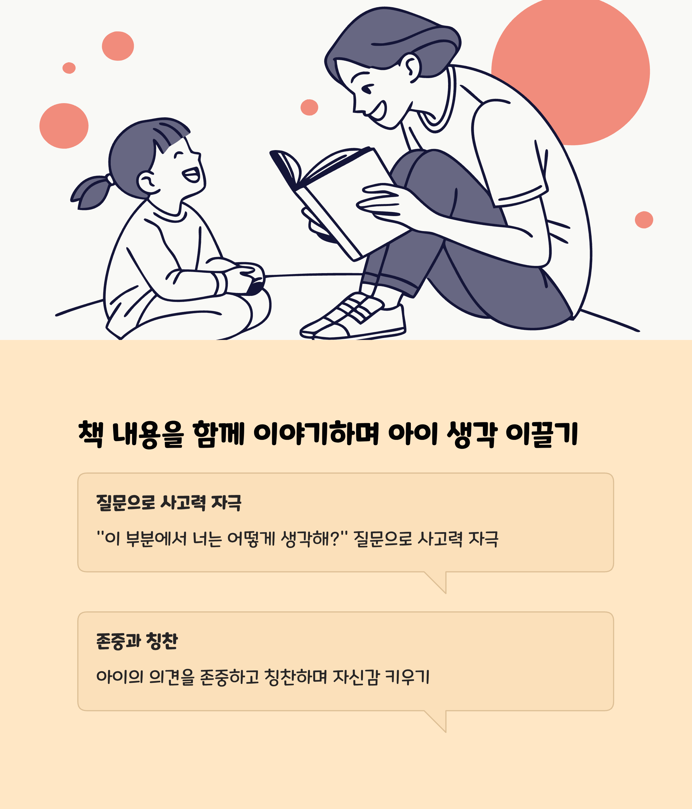 | 읽은 후 | 재미 중심 대화, 질문으로 생각 표현 유도 | 독서 이해 증진, 가족 소통 강화 |
