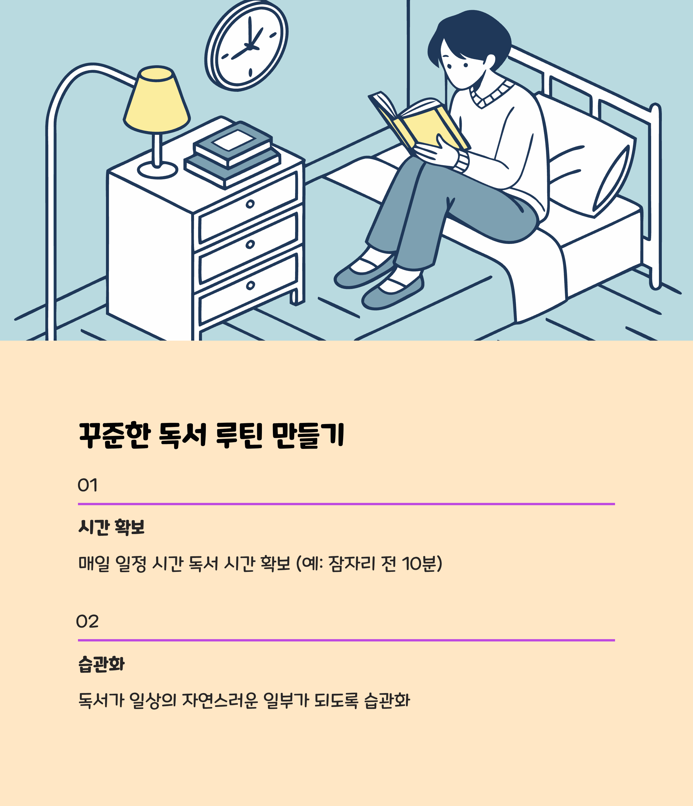 - 매일 같은 시간, 일정 루틴으로 독서 시간을 생활화하기
