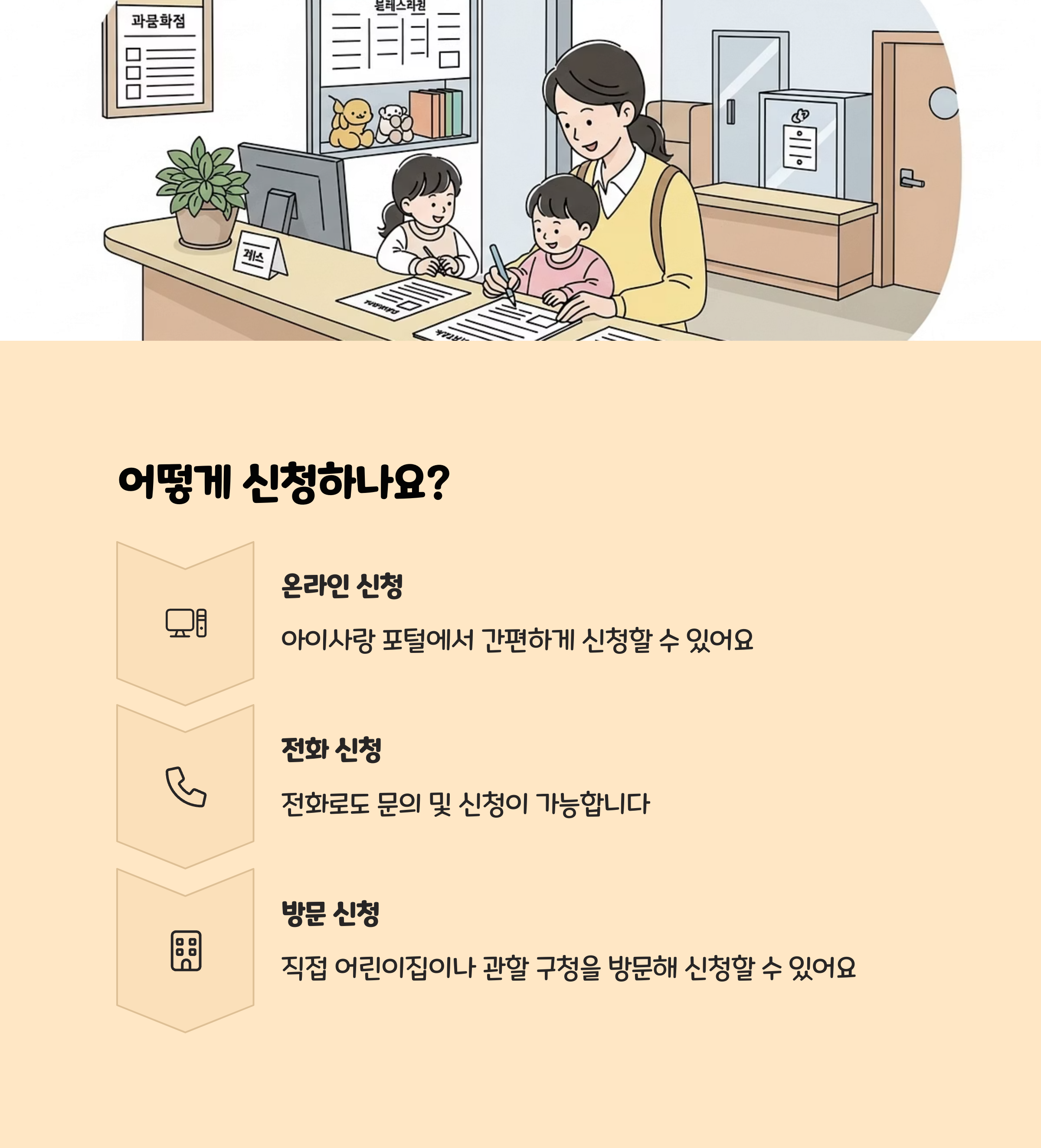 - 가족관계증명서, 신분증, 시간제 보육 신청서(첫 방문 시 제출)
