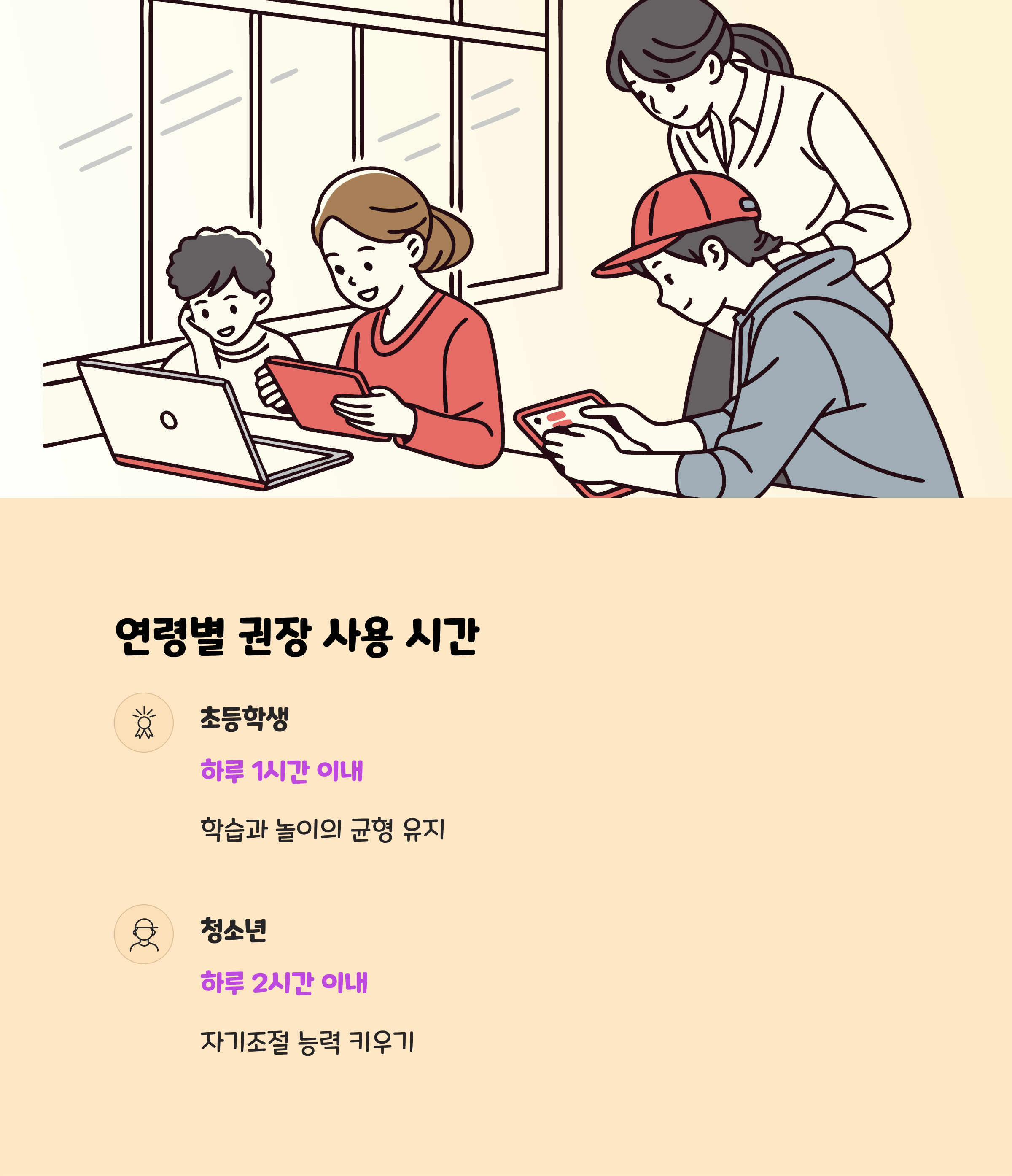 - 초등학생은 하루 1시간 이내를 권장