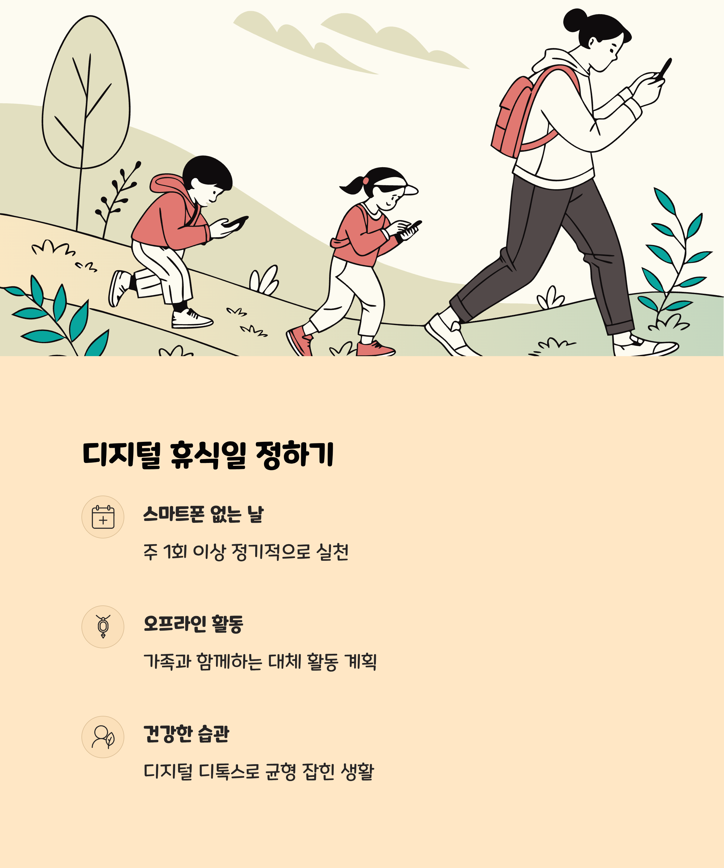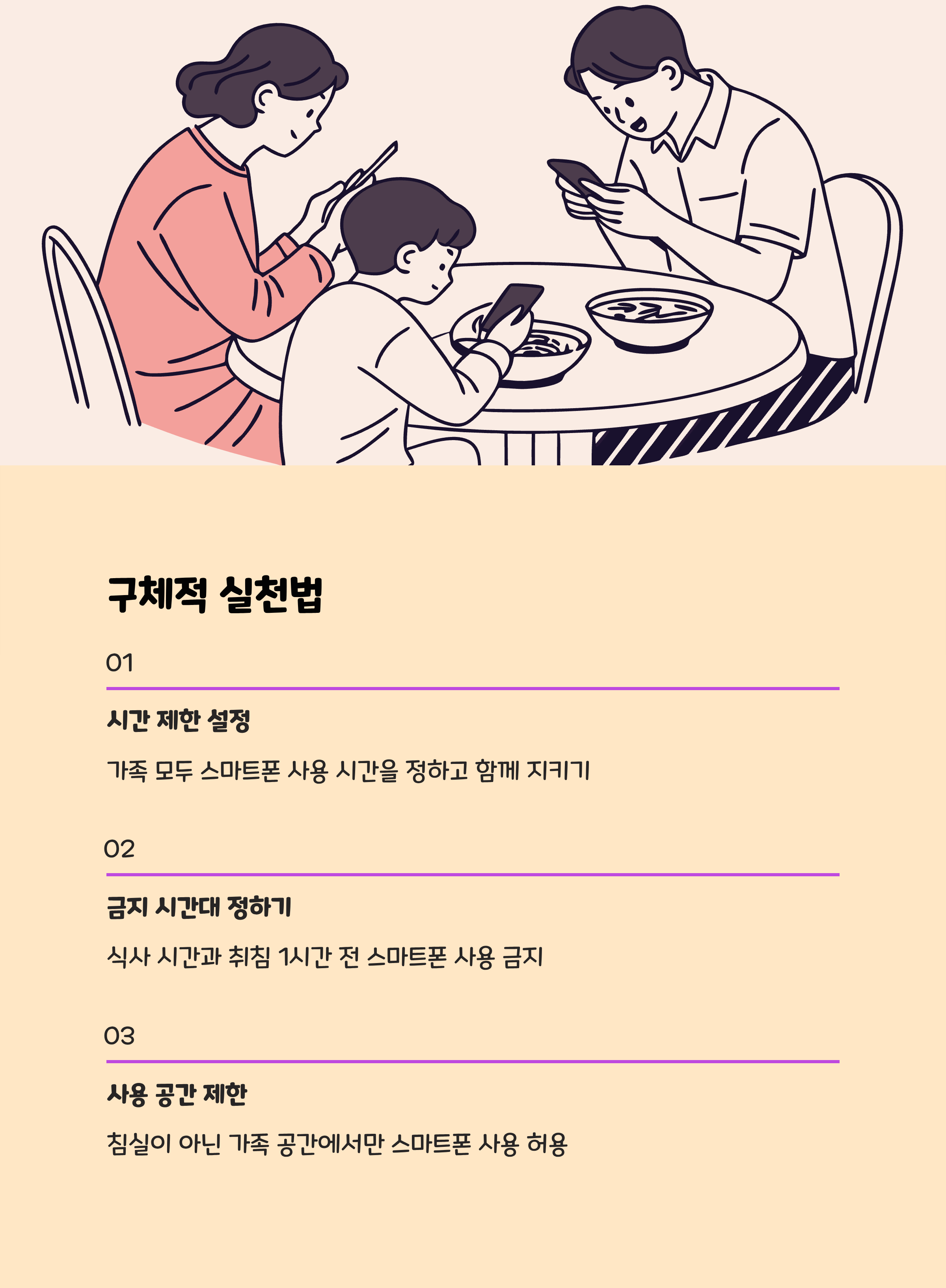 - 가족 식사 시간은 스마트폰 없이 대화 시간으로 활용
