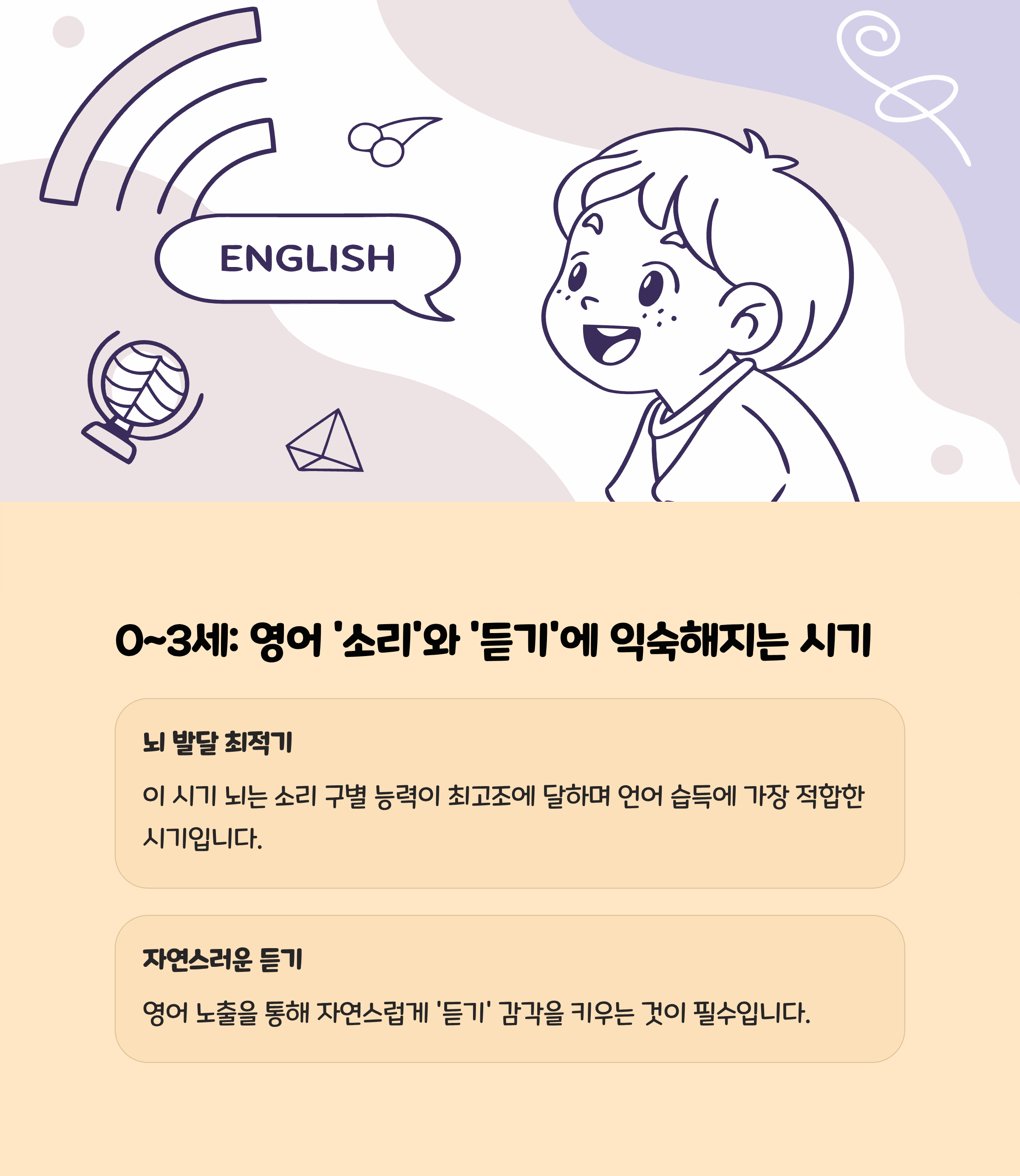 과학적으로 아기의 뇌는 출생부터 7세까지가 '언어 습득의 황금기'로 알려져 있습니다. 이 시기에 언어를 배우는 능력이 가장 뛰어나며 노출량과 경험이 많을수록 언어 습득이 쉽고 빠릅니다. 특히, 0~3세에는 영어에 자연스럽게 노출시키는 시기로, 듣기 능력을 키우는 데 집중하는 것이 중요합니다. 실제로 3세 이전에 영어를 접한 아이가 발음과 억양 습득 면에서 유리하다는 연구 결과가 있습니다.