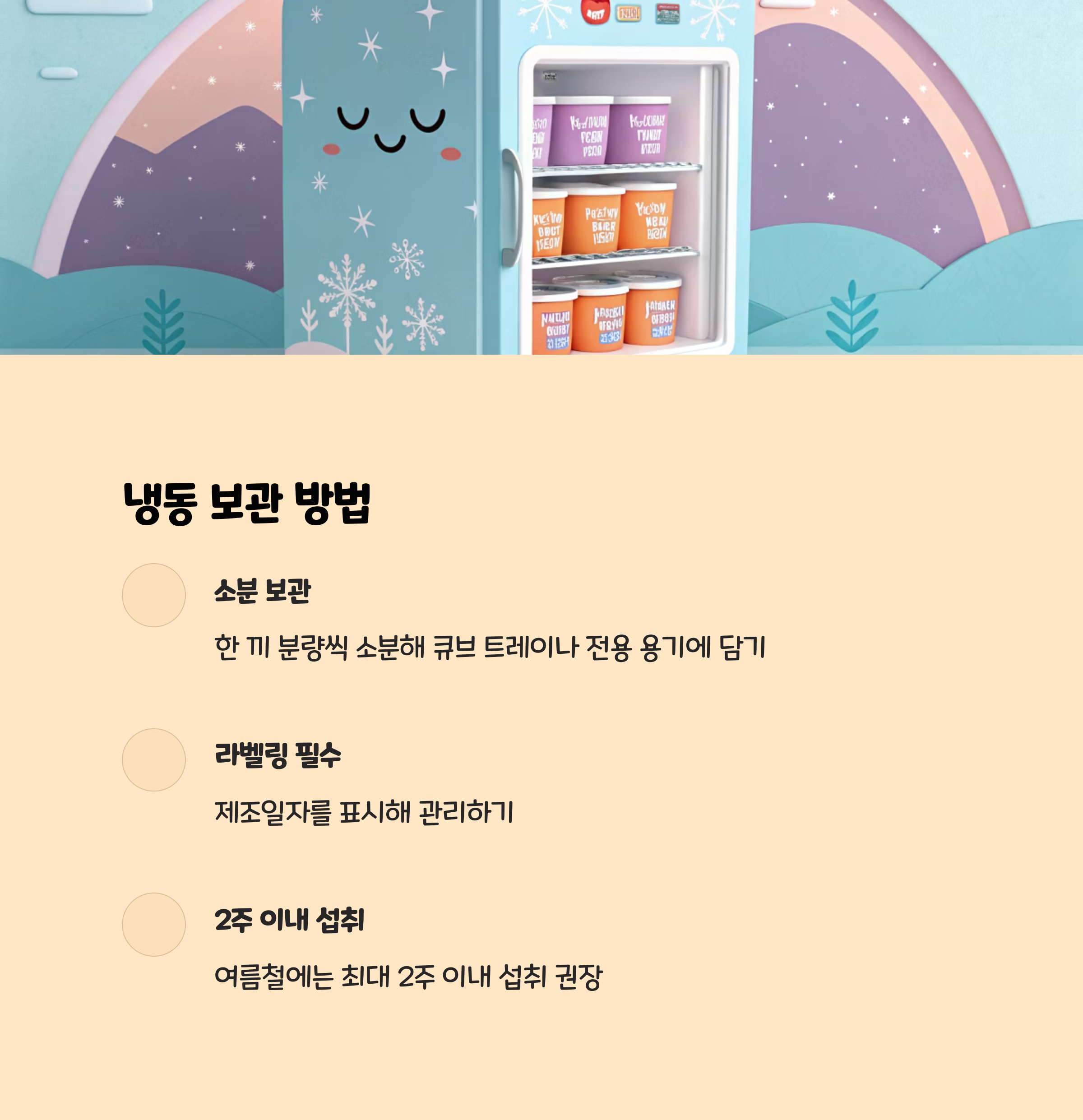 냉동 보관: 2주 이내 섭취