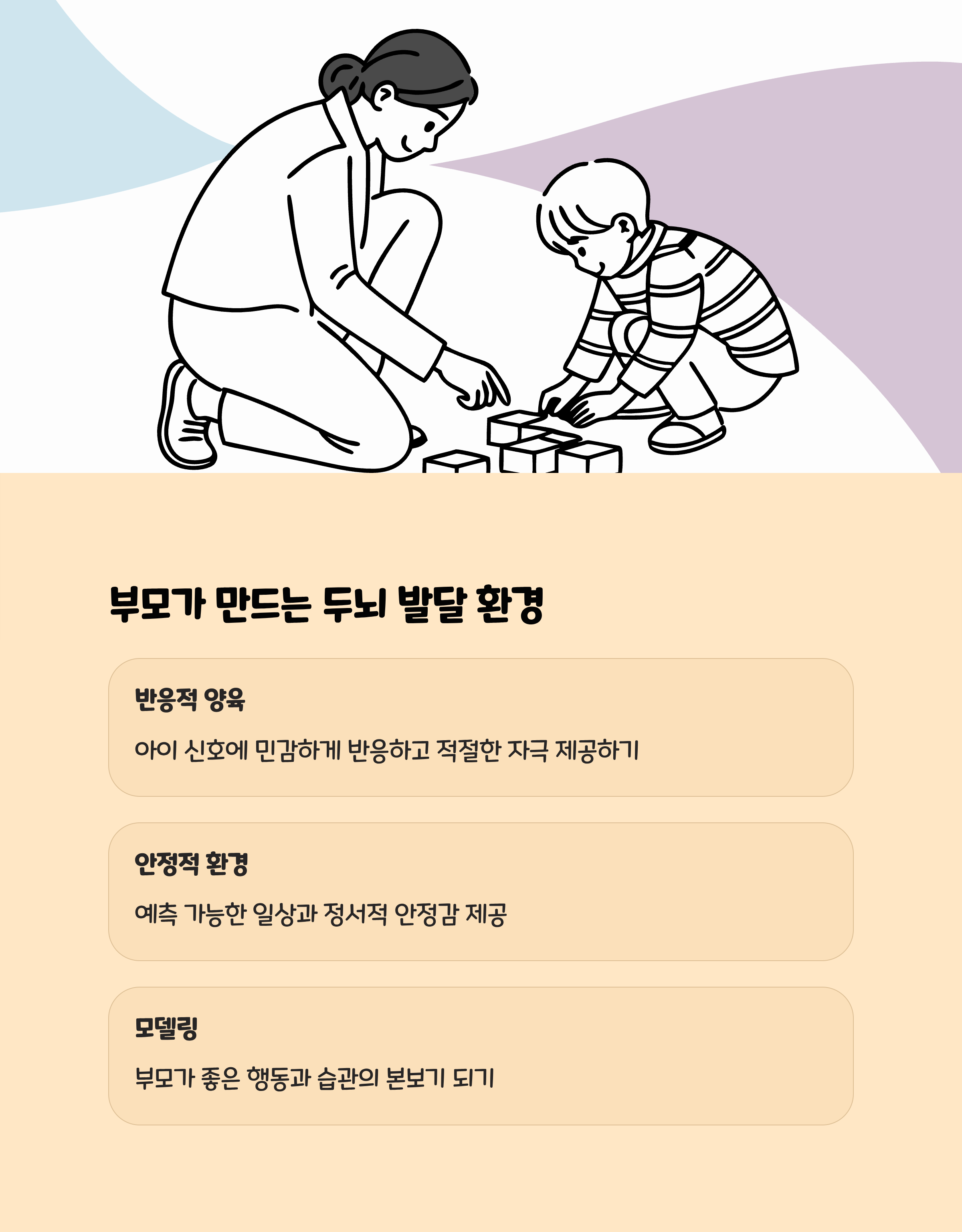 영유아 두뇌는 출생부터 만 3세까지 급격히 발달하며, 이 시기가 두뇌 신경망 형성의 황금기입니다. 이 기간에 풍부한 자극과 안정적인 환경을 제공하면 평생 학습 능력과 정서 발달에 긍정적인 영향을 미칩니다.