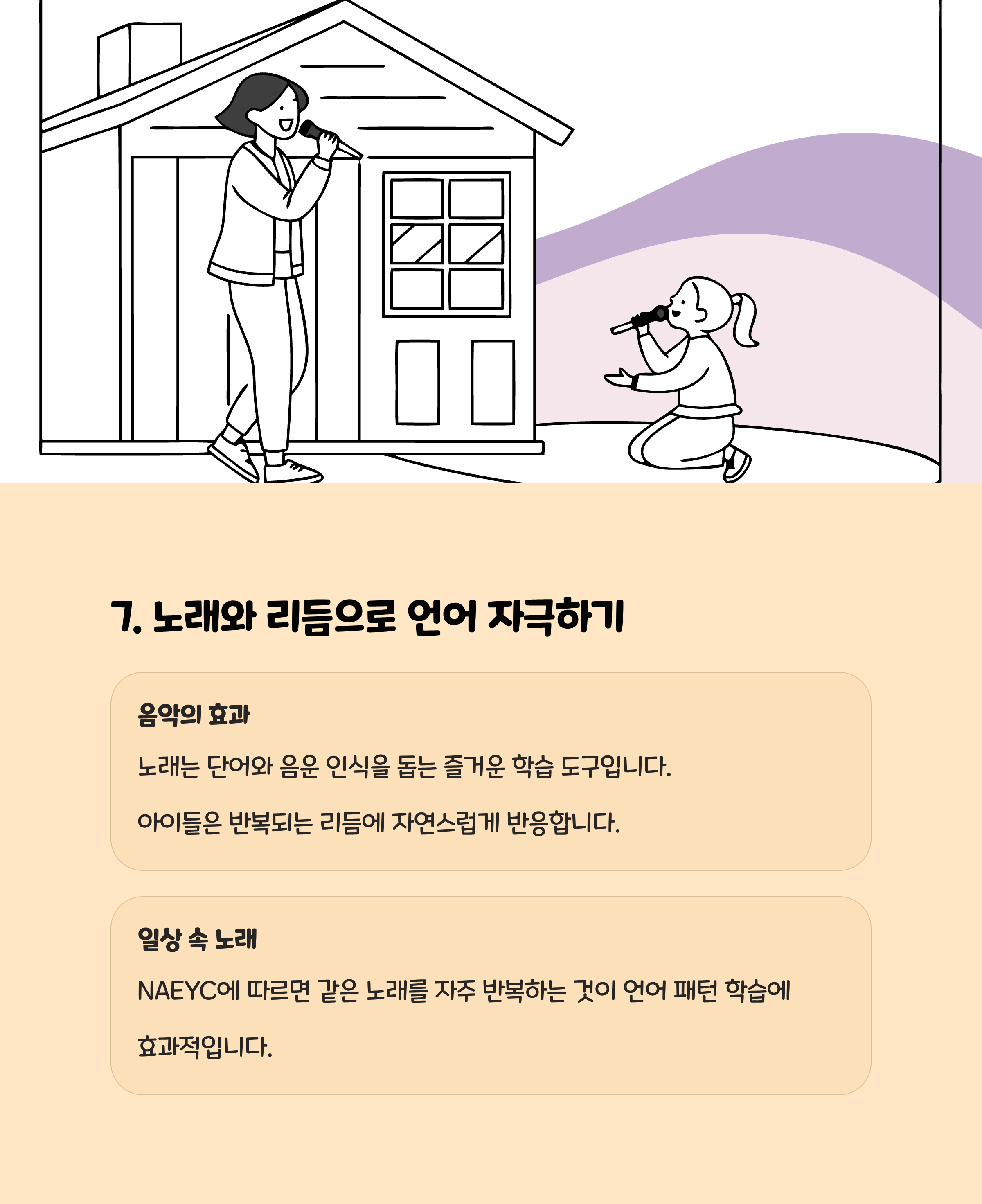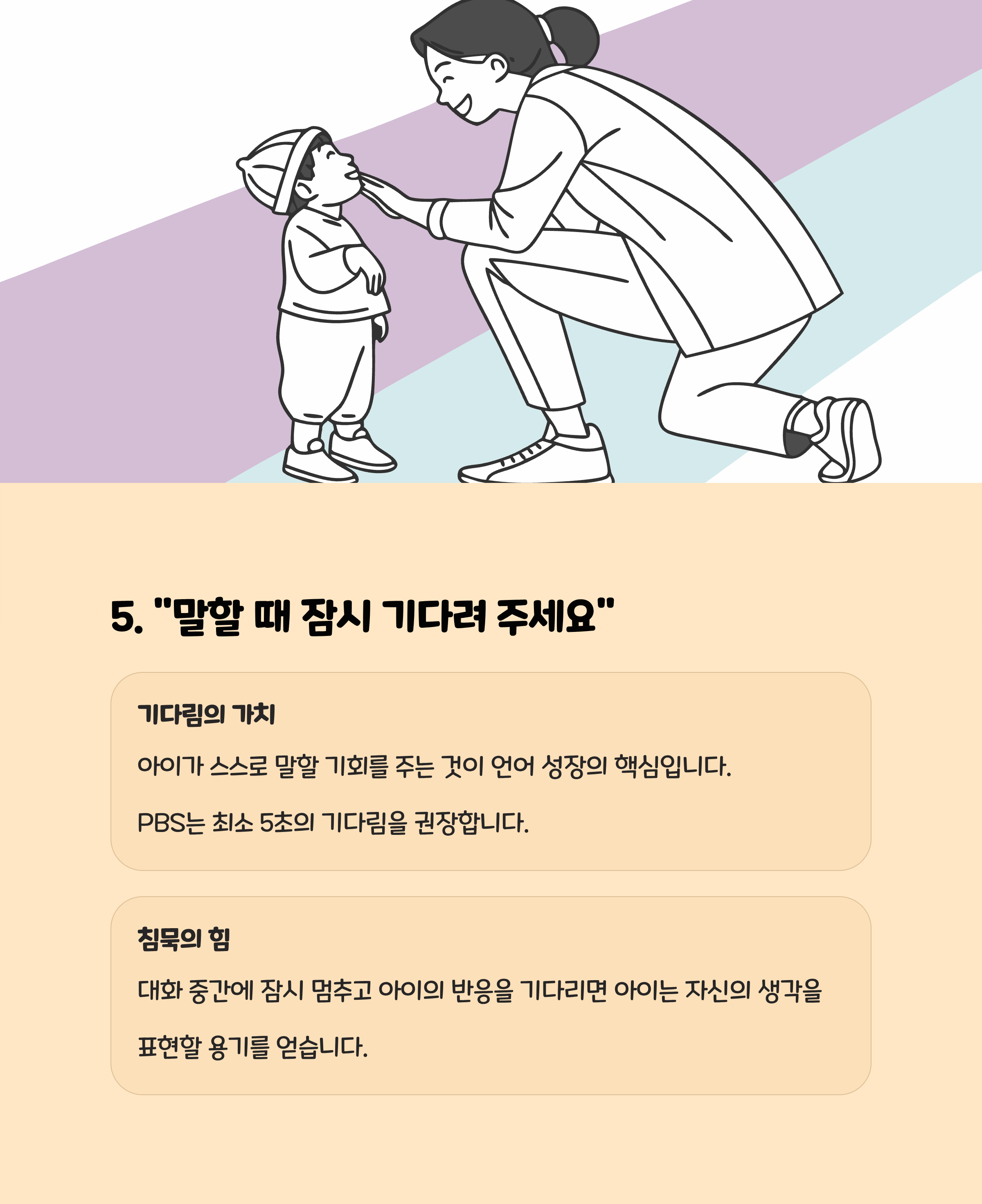 | 기다림 활용 | 노래 중간 멈추기, 대답 유도 | 언어 표현 23%↑ |