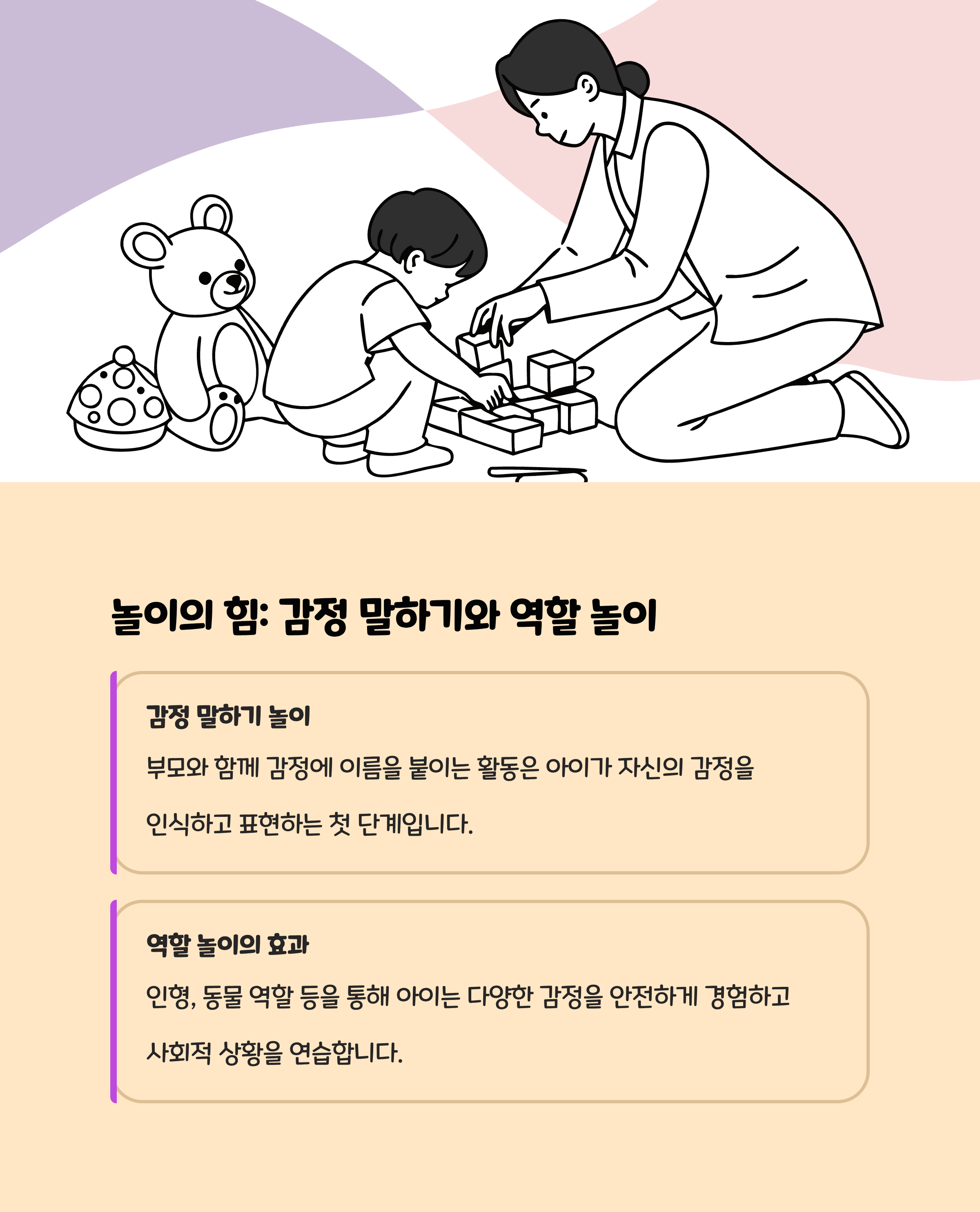 - 부모와 함께하는 역할 놀이가 정서 표현과 자기 조절에 특히 효과적입니다.