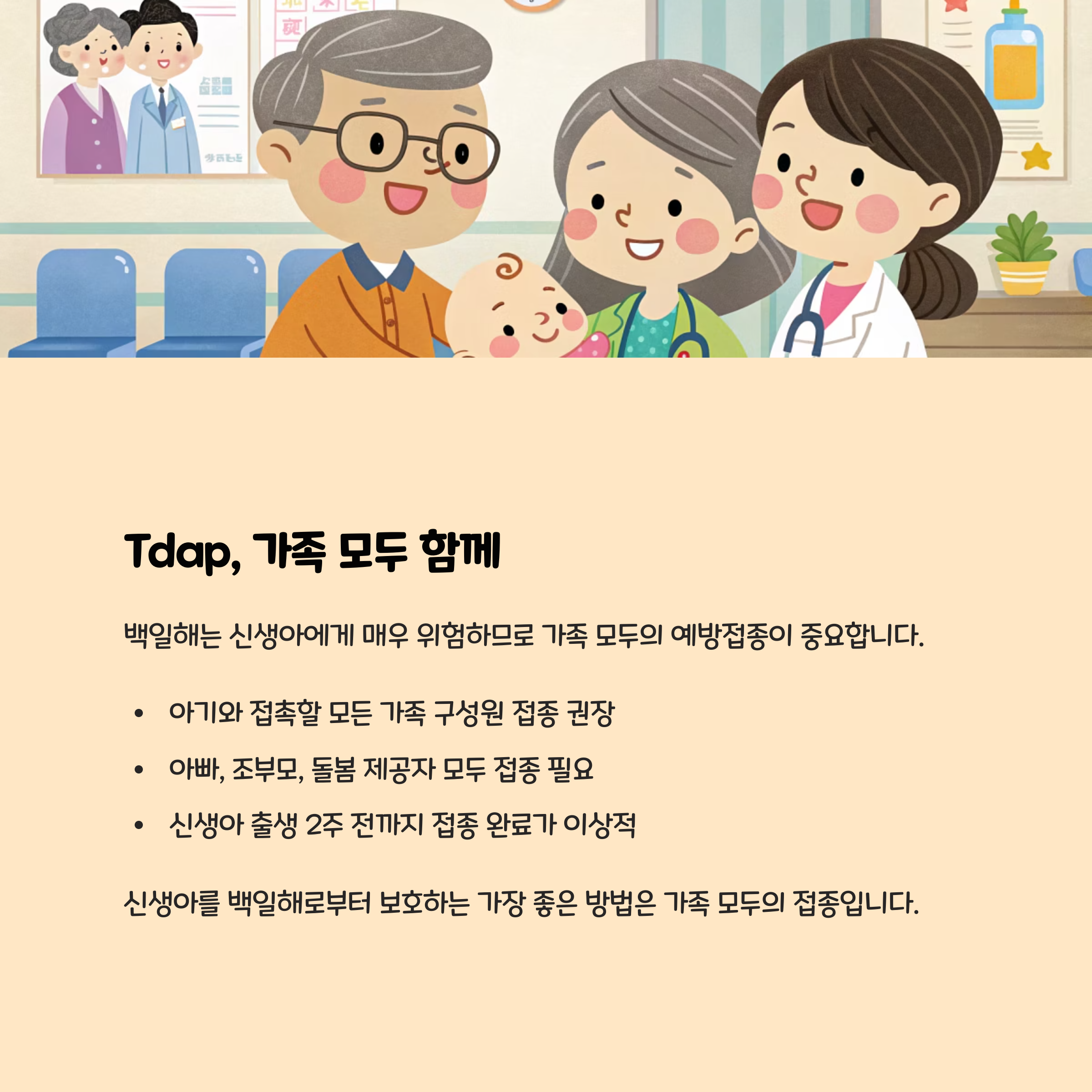 - 임신 전 또는 임신 27주 이후에 1회 접종이 권장되며, 신생아의 백일해 예방에도 효과적입니다.