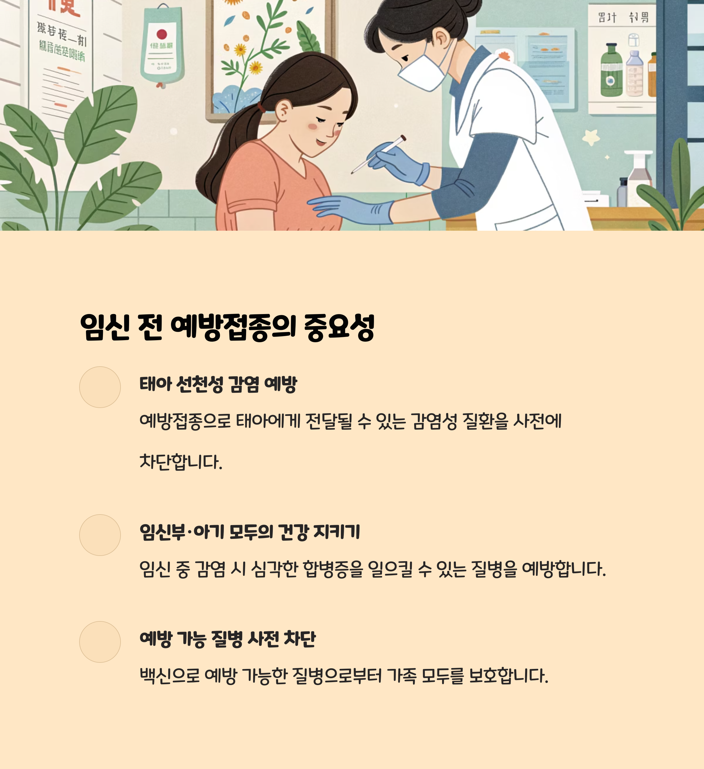 임신을 계획하면서 가장 걱정되는 것 중 하나는 ‘혹시 내가 모르는 감염병이 태아에게 영향을 주지 않을까?’라는 불안감입니다. 실제로 임신 전 예방접종은 산모와 아기의 건강을 지키는 데 매우 중요한 역할을 합니다. 이번 글에서는 임신 준비 중 반드시 확인해야 할 예방접종 종류와, 무료로 접종받을 수 있는 기관 정보를 최신 데이터와 함께 안내합니다.