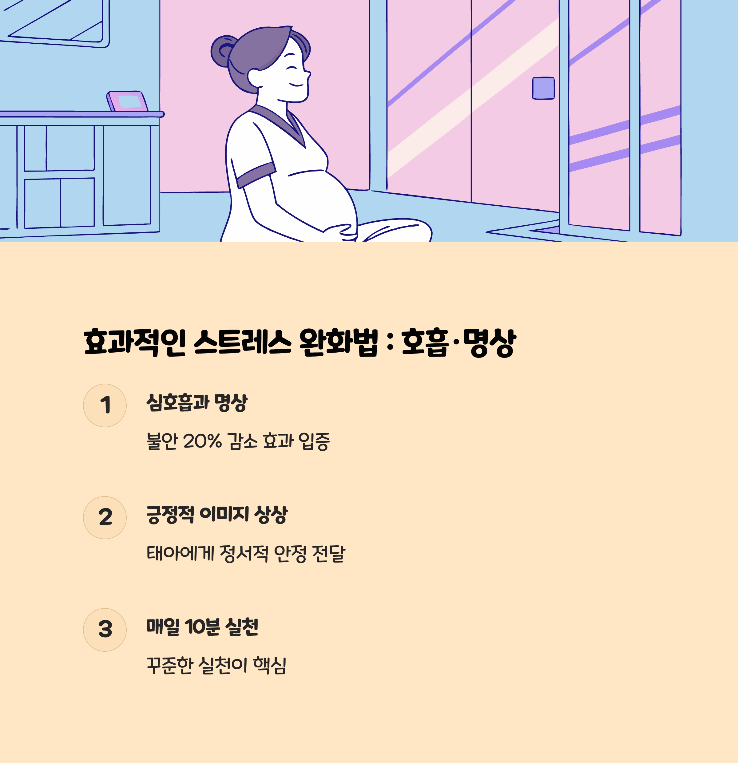 임신 중기에는 규칙적인 수면, 식사, 운동 루틴이 무엇보다 중요합니다. 간단한 호흡법과 명상은 실제로 스트레스 호르몬 수치를 낮추는 데 도움을 주며, 10분 이상 꾸준히 명상 시간을 가지면 불안 감소에 효과적이라는 연구 결과가 있습니다.