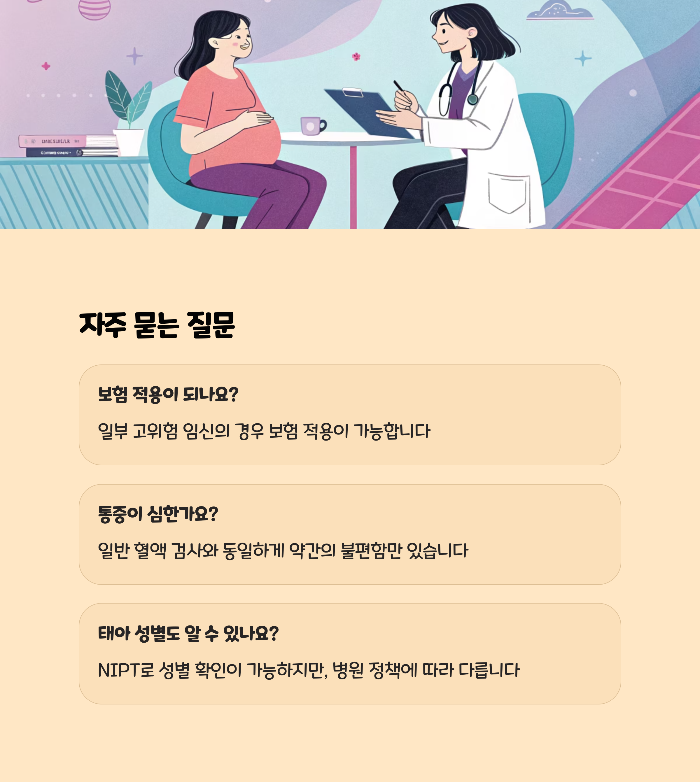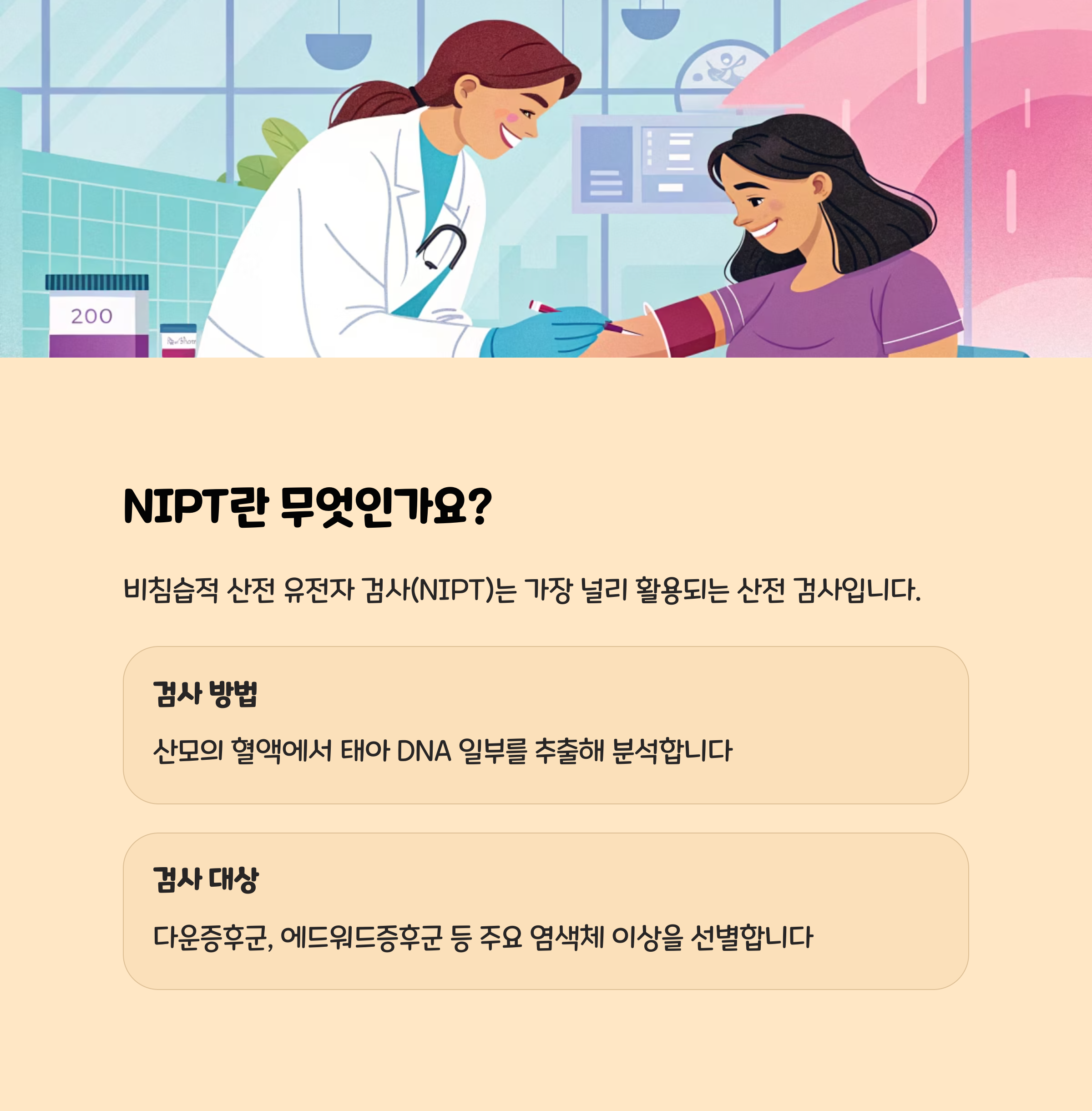 - 검사 종류(NIPT, 염색체 검사 등)와 비용 사전 확인 (NIPT의 경우 국내 기준 30~70만 원 선)