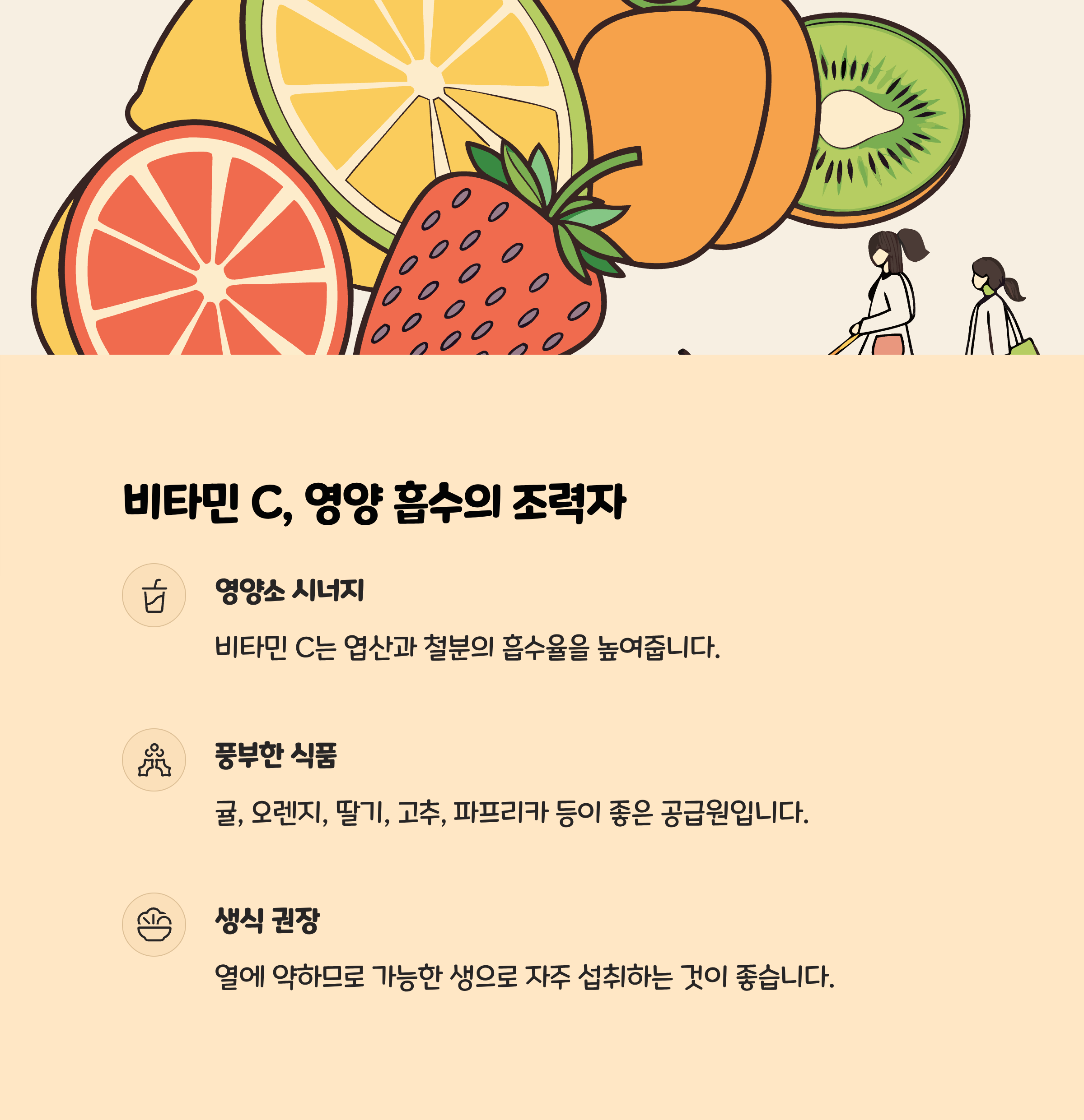• 비타민 C는 철분 흡수를 도울 뿐만 아니라 태아 조직 발달에도 기여합니다.