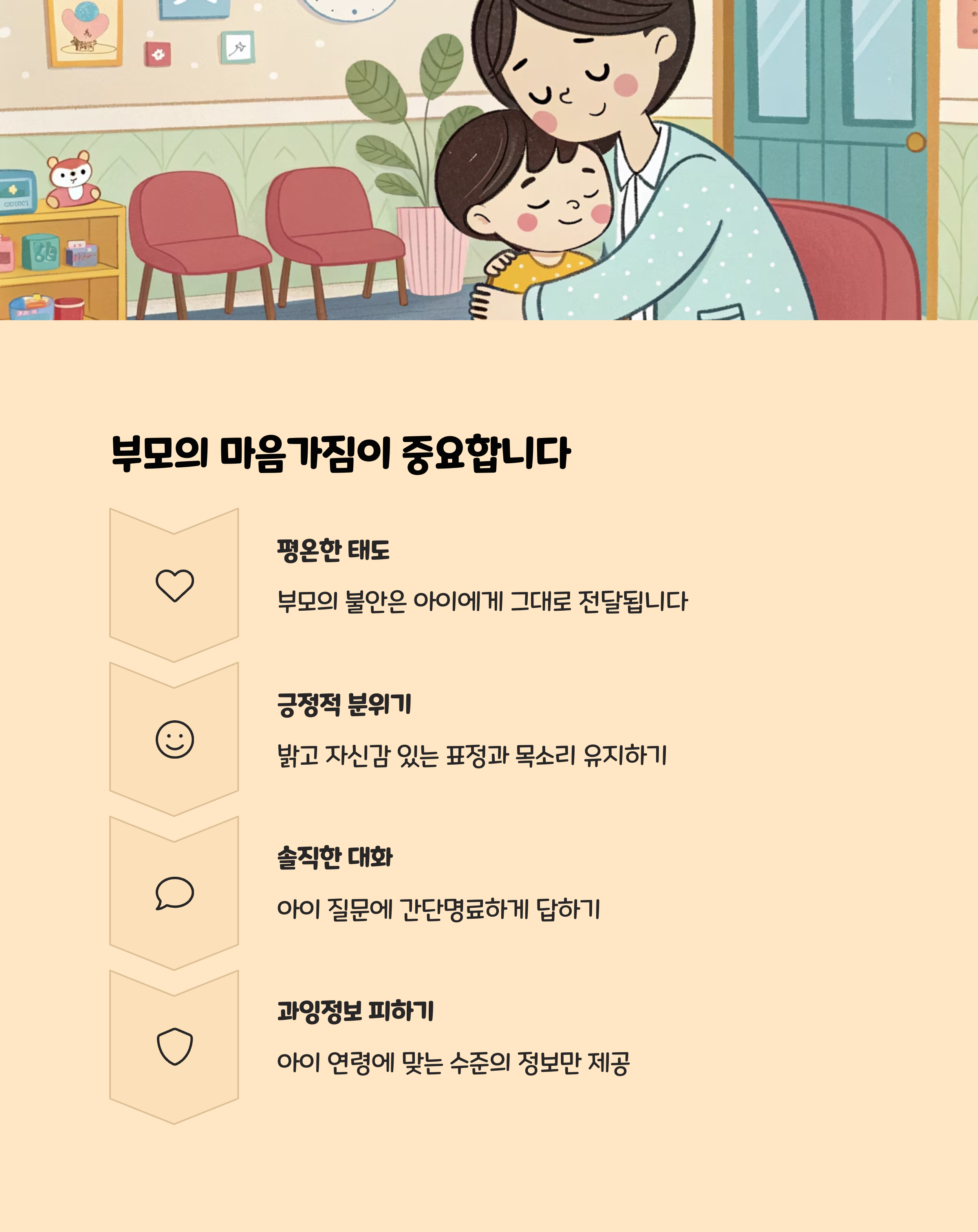 - 편안한 복장 : 아이가 긴장하지 않도록