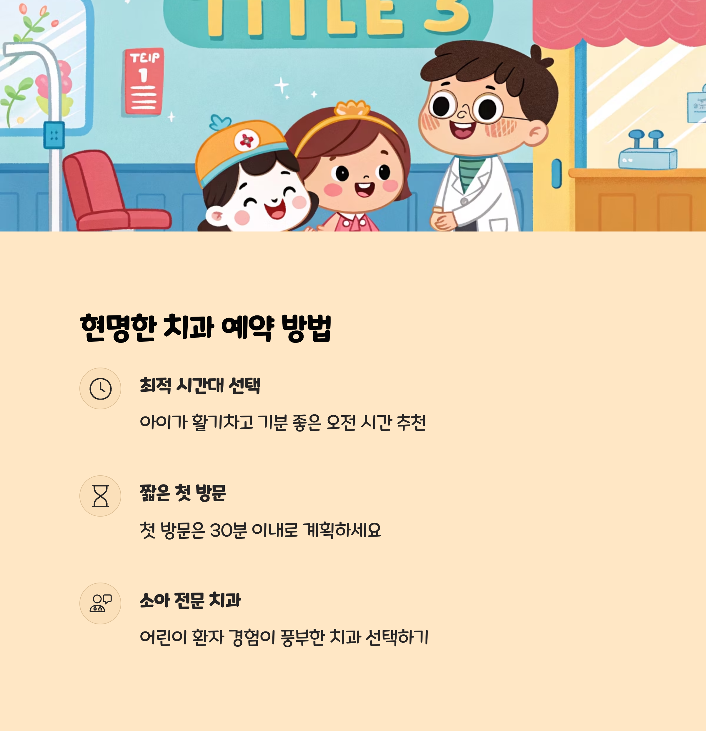 자녀의 첫 치과 방문, 어떻게 준비해야 할지 고민하는 부모님들이 많습니다. 아이가 치과를 두려워하지 않고 건강하게 진료를 받을 수 있도록, 실제 전문가와 현장 경험을 바탕으로 한 구체적인 준비법을 안내합니다. 이 글을 통해 부모님과 아이 모두가 치과 방문을 긍정적으로 경험할 수 있도록 실질적인 해결책을 제시하겠습니다.