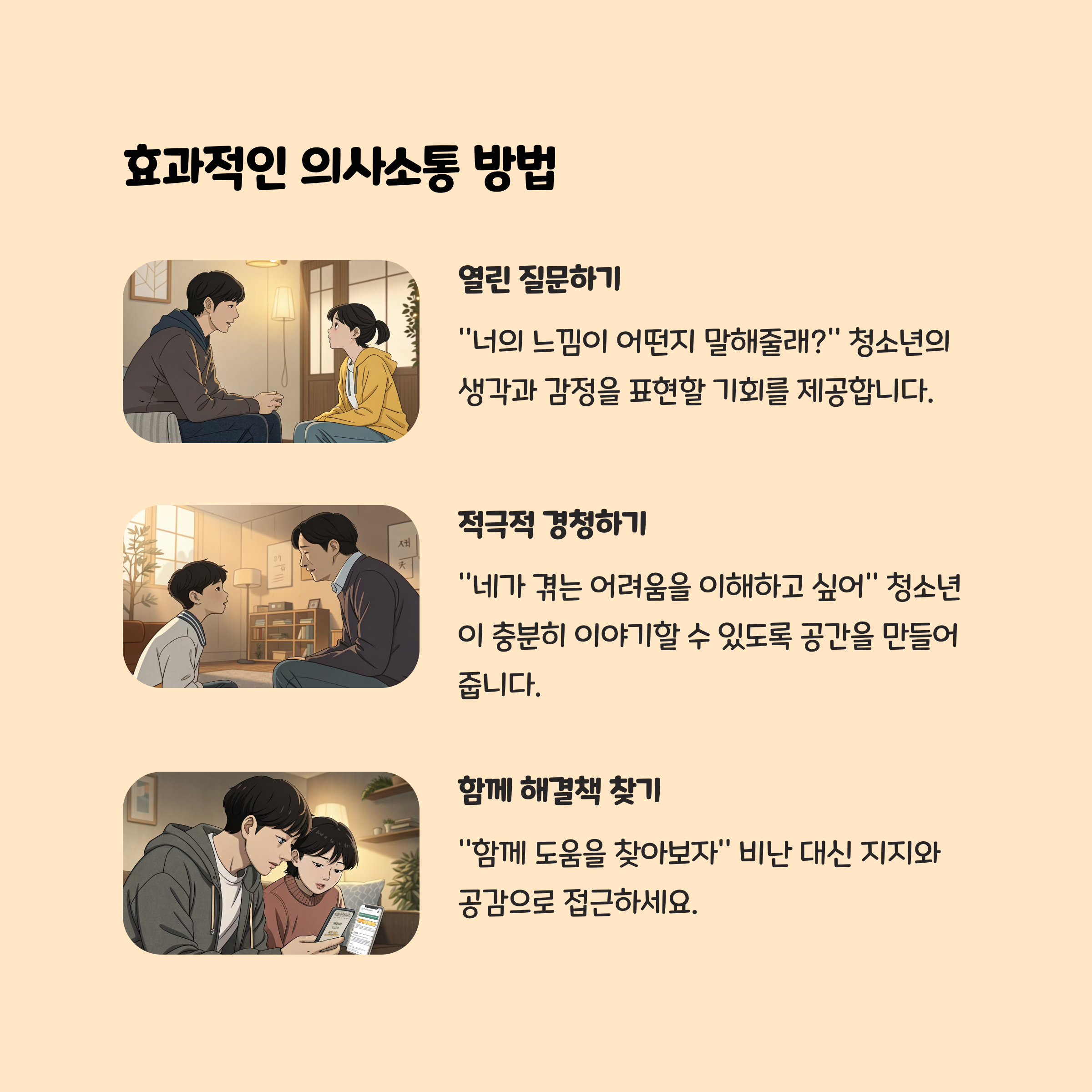 - 비난이나 조언보다는 경청과 지지를 우선합니다.