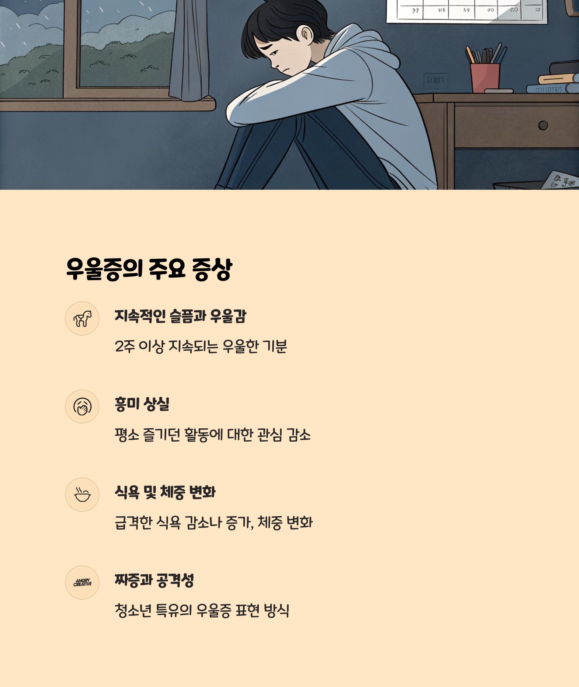 중학생의 우울·불안 증상은 결코 혼자 해결할 수 있는 문제가 아닙니다. 가족과 학교, 지역사회가 함께 관심을 갖고 조기에 발견해 신속하게 전문 상담과 치료를 연결하면, 아이들은 건강하게 회복될 수 있습니다. 작은 변화라도 놓치지 말고, 전문가와 함께 아이의 마음을 지켜주세요.
