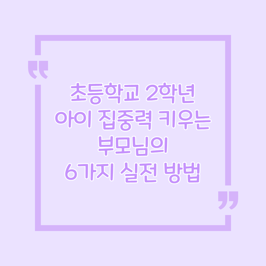 초등학교 2학년 아이들은 성장과 학습의 기초가 형성되는 중요한 시기입니다. 하지만 많은 부모님들이 아이들이 산만하고 집중하지 못해 고민하십니다. 집중력은 타고나는 것이 아니라 올바른 환경과 습관, 부모님의 꾸준한 관심으로 충분히 키울 수 있는 능력입니다. 이번 글에서는 집에서 실천할 수 있는 효과적인 집중력 향상 방법을 정리해 보았습니다.