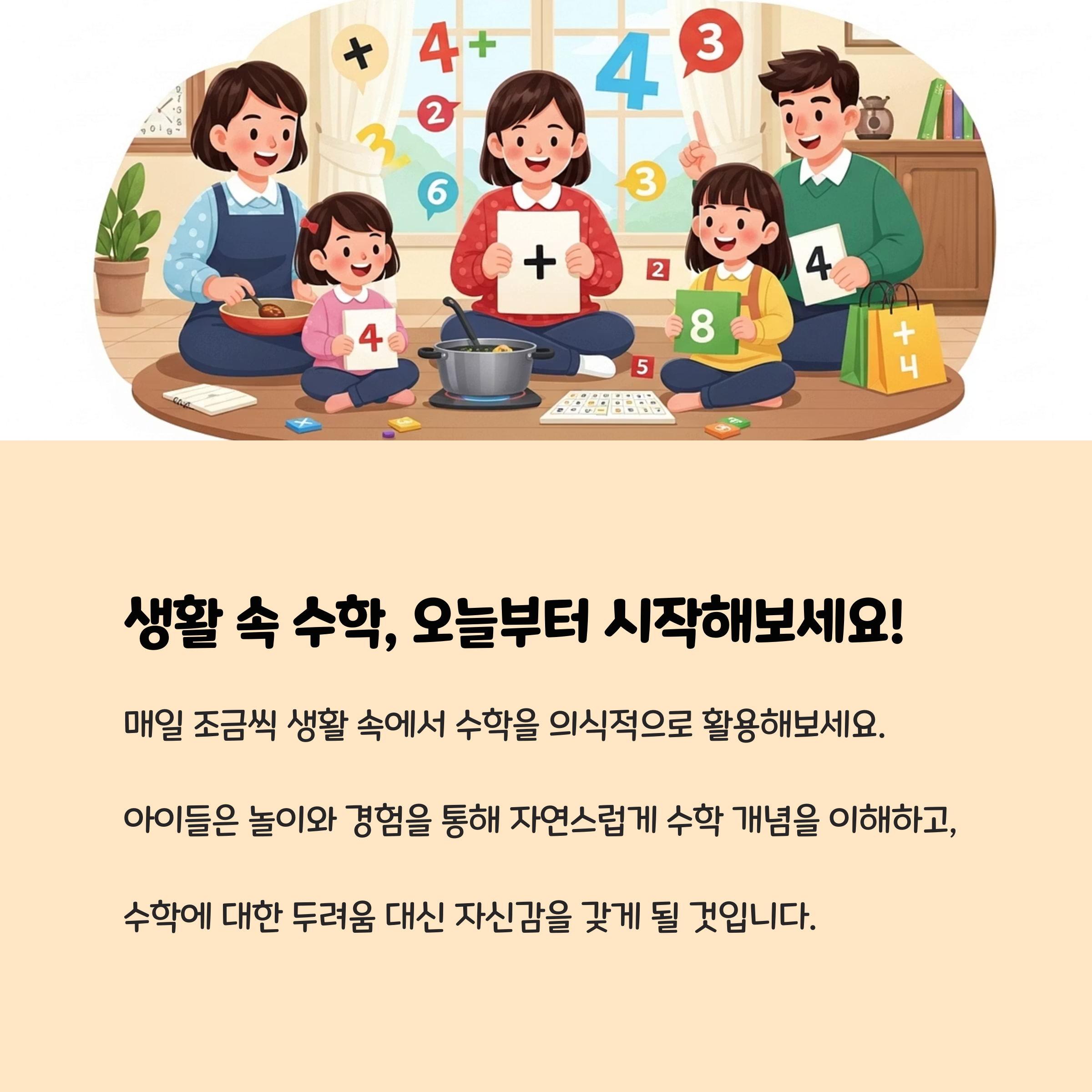 수학은 교과서 속 공식이 아니라, 우리 일상 곳곳에 숨어 있는 힘입니다. 오늘부터 아이와 함께 실생활에서 수학을 발견하고, 재미있게 문제를 해결해 보세요. 수학이 어려운 고민, 이제는 실생활에서 답을 찾을 수 있습니다!