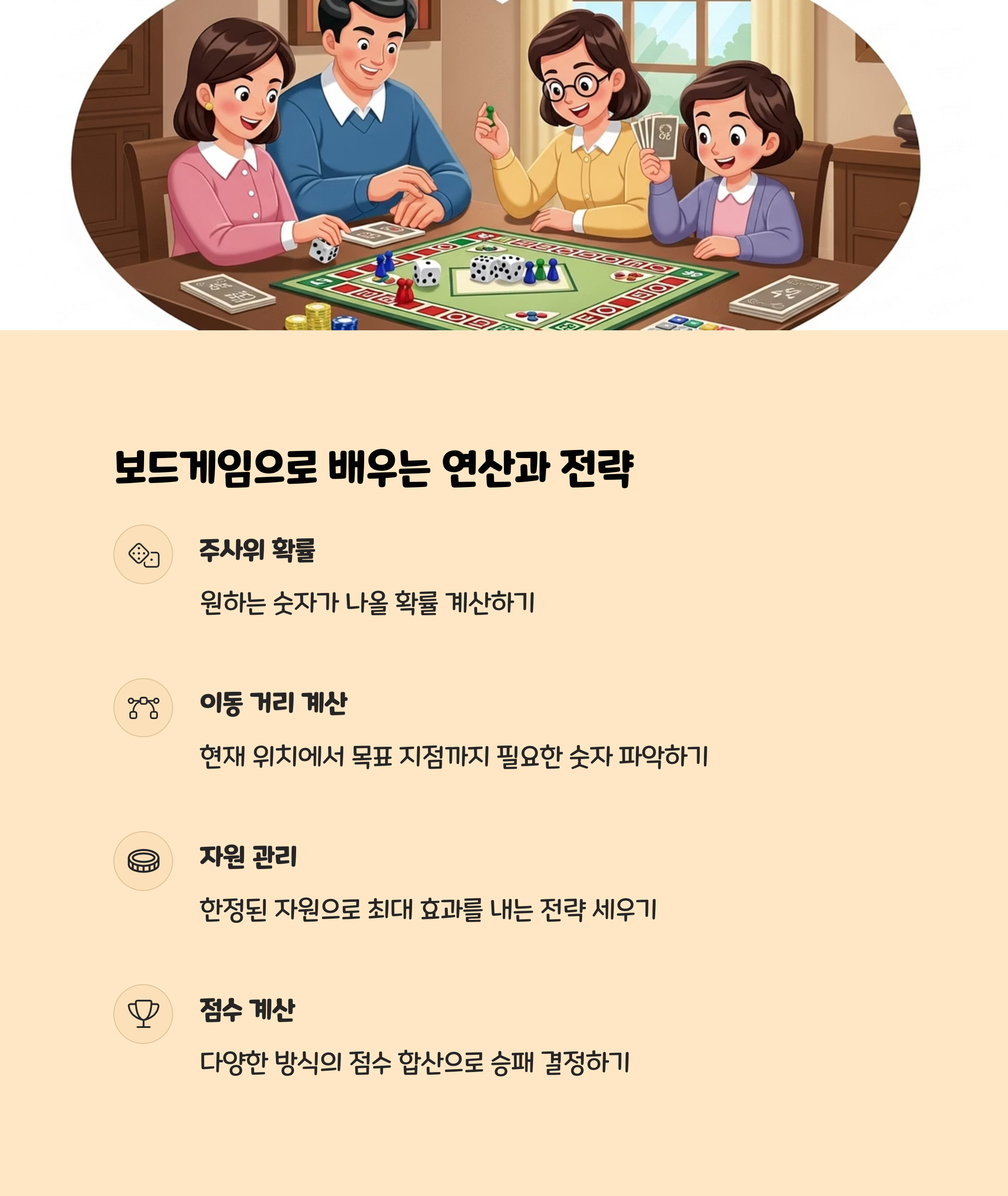 - 규칙을 이해하고 전략을 세우는 과정에서 문제 해결력과 논리적 사고가 자연스럽게 향상됩니다.