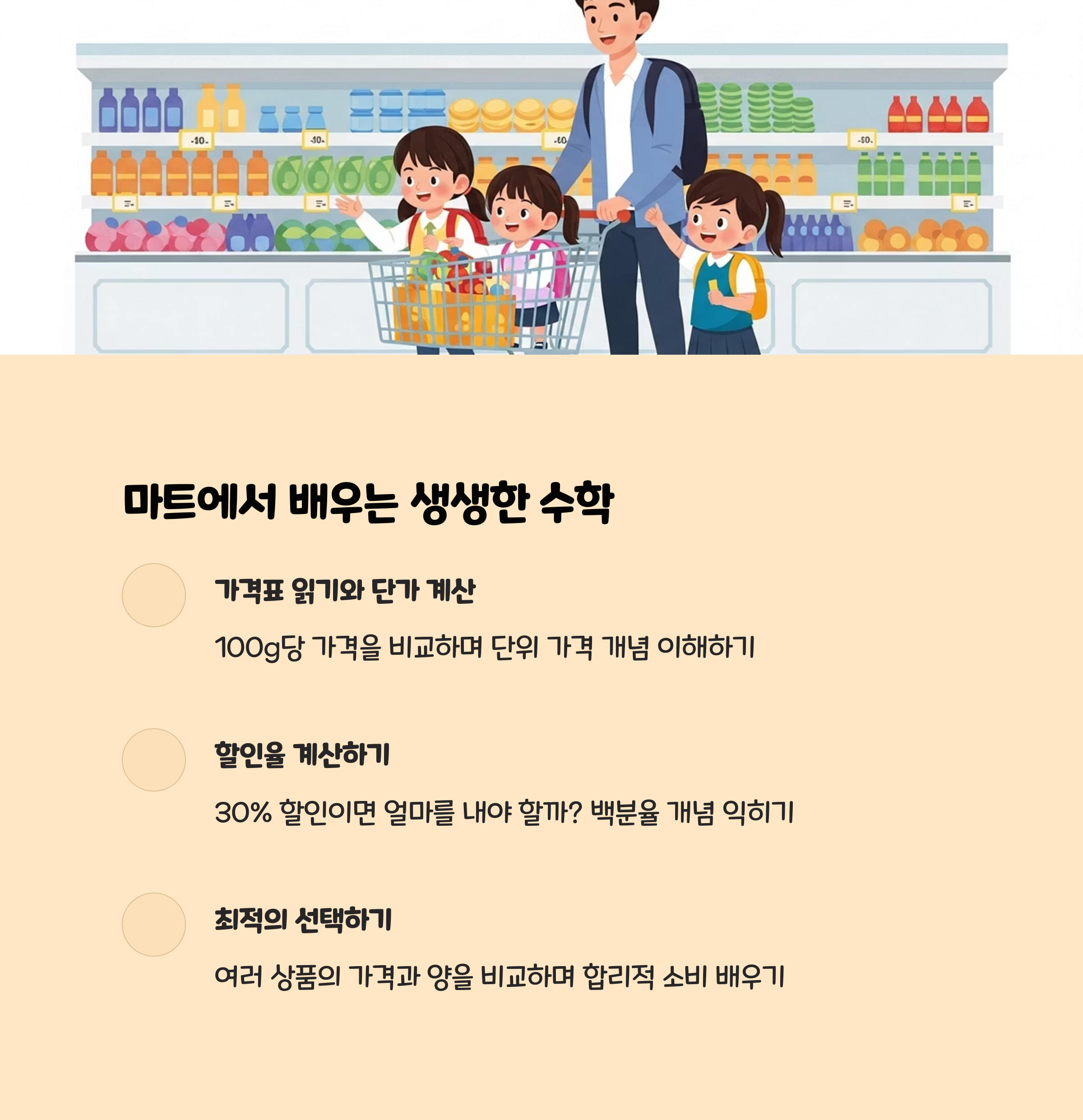 수학을 실생활과 연결하면 개념이 더 쉽게 이해되고, 문제 해결 능력과 창의적 사고가 자연스럽게 길러집니다. 실제로 마트, 요리, 시간 관리 등 다양한 상황에서 수학이 활용됩니다.