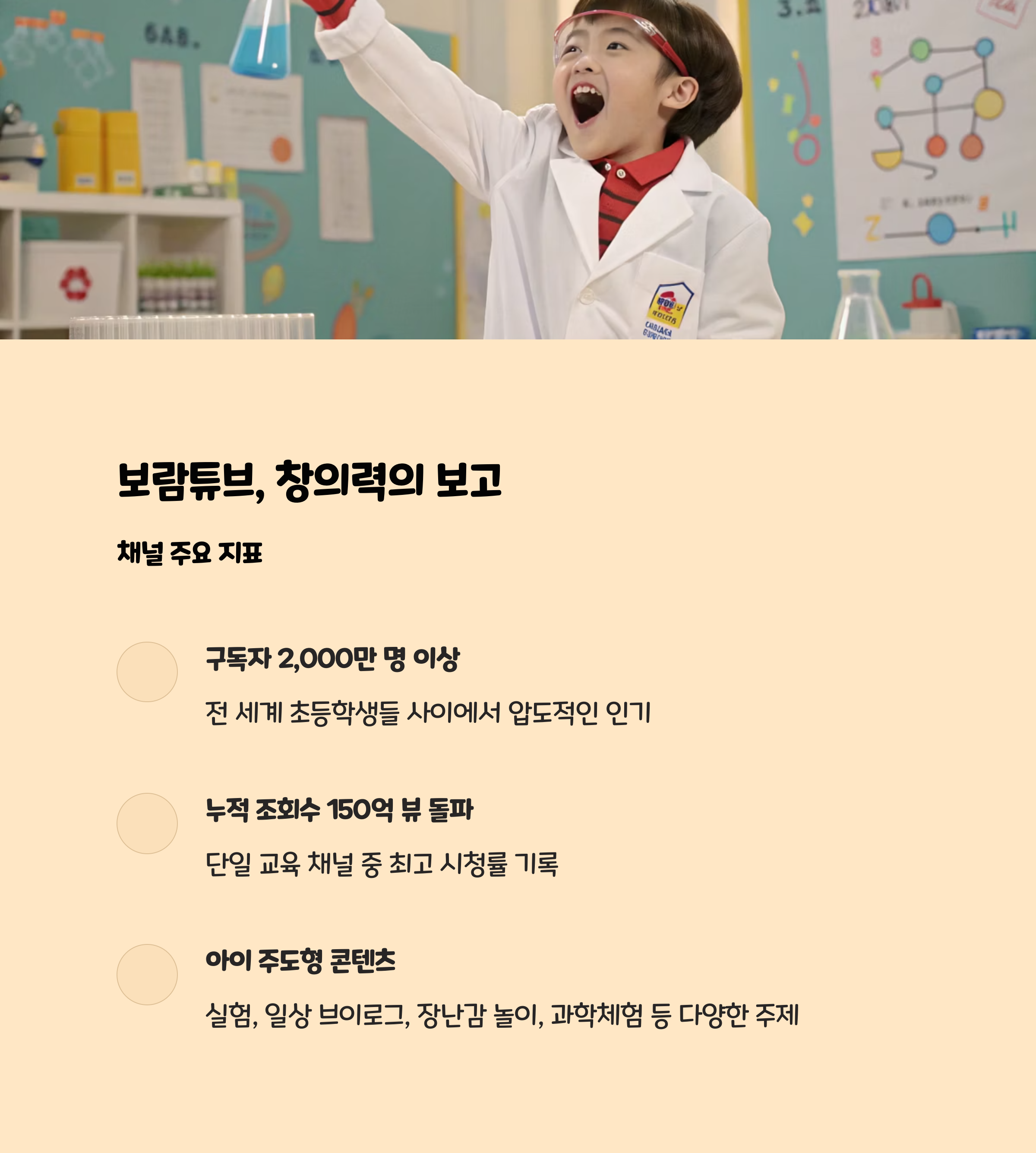 • 글로벌 인기 : 전 세계 다양한 언어로 더빙되어 수많은 어린이에게 사랑받는 채널