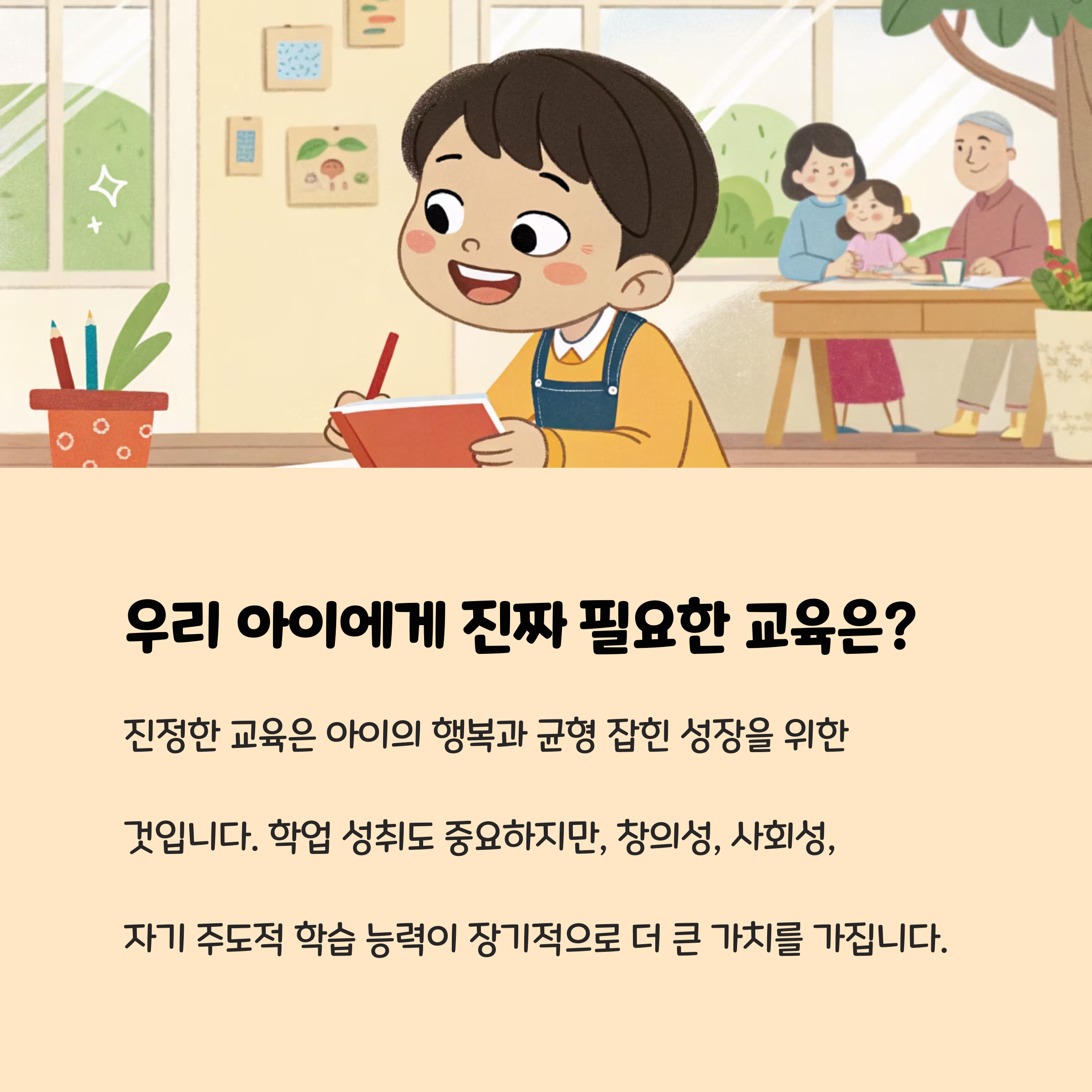 사교육의 필요성은 아이의 학습 수준, 흥미, 가정의 교육관, 경제적 여건에 따라 달라집니다. 꼭 필요하지 않은 경우도 많으므로, 아이의 특성과 상황을 고려해 신중하게 결정하는 것이 바람직합니다.