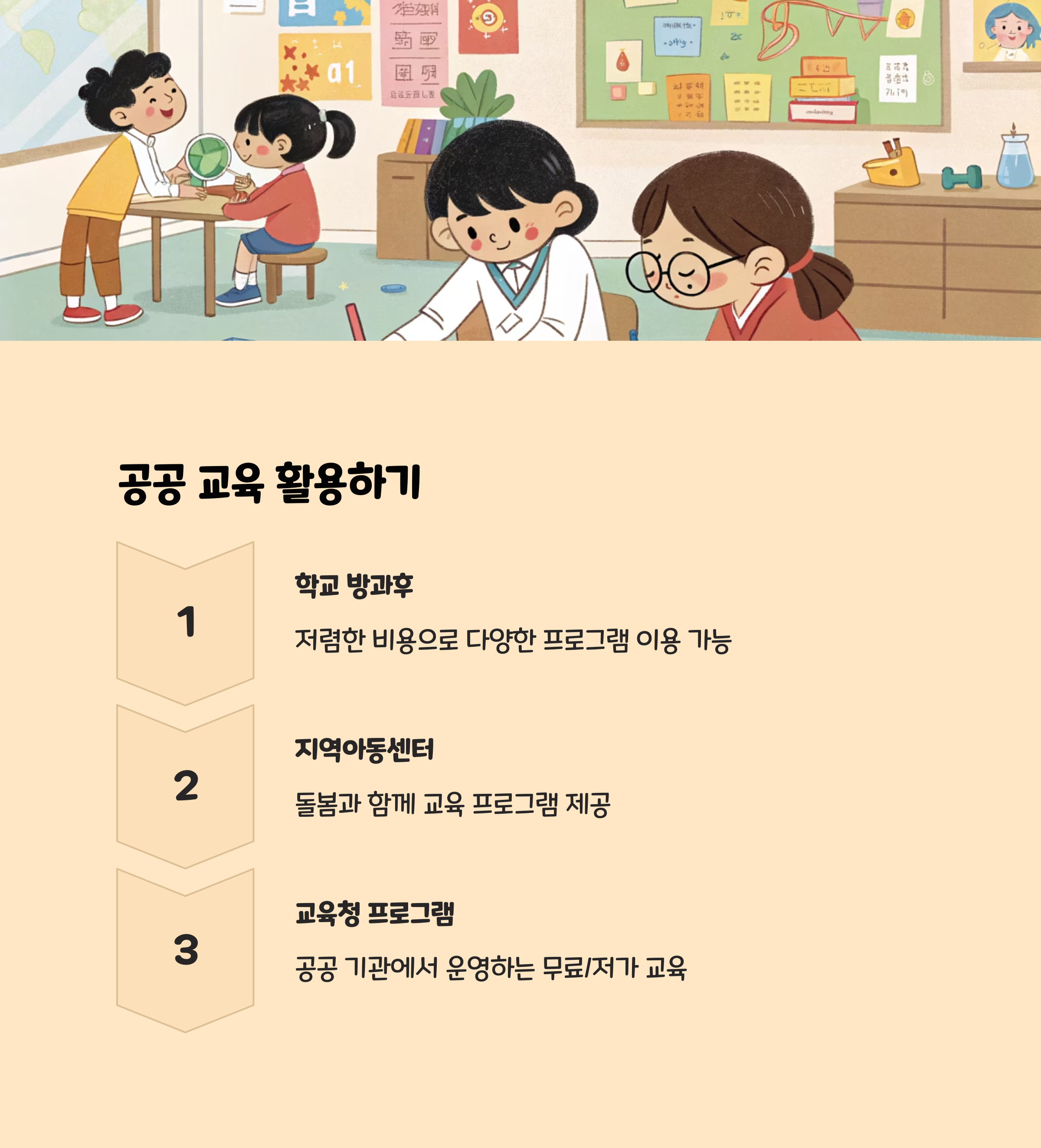 - 공공 방과후학교, 온라인 강의, 지역문화센터 등 다양한 대안을 적극 활용하면 비용을 줄이면서도 효과적인 학습이 가능합니다.