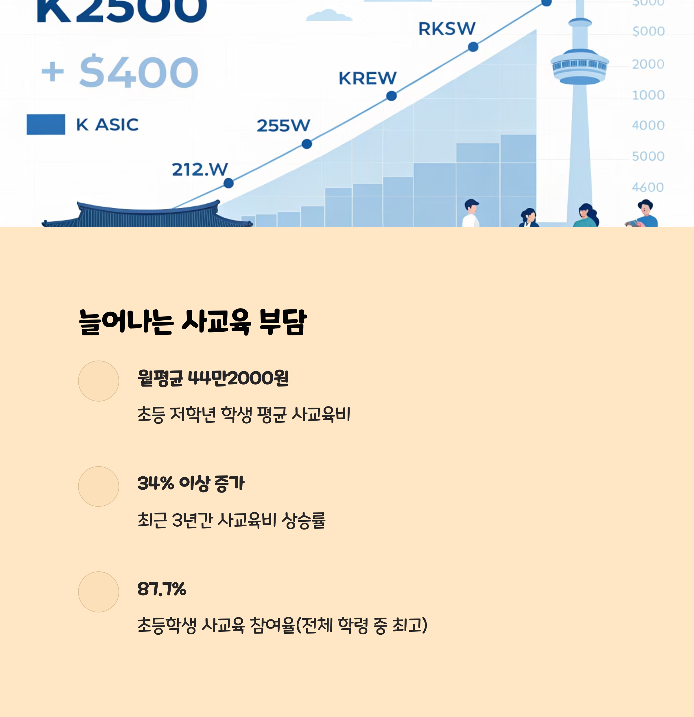 - 정부의 공교육 강화 정책(늘봄학교 등)이 시행되고 있지만, 실제로는 영어·수학 등 핵심 과목 사교육이 더 빨라지는 현상이 나타나고 있습니다.