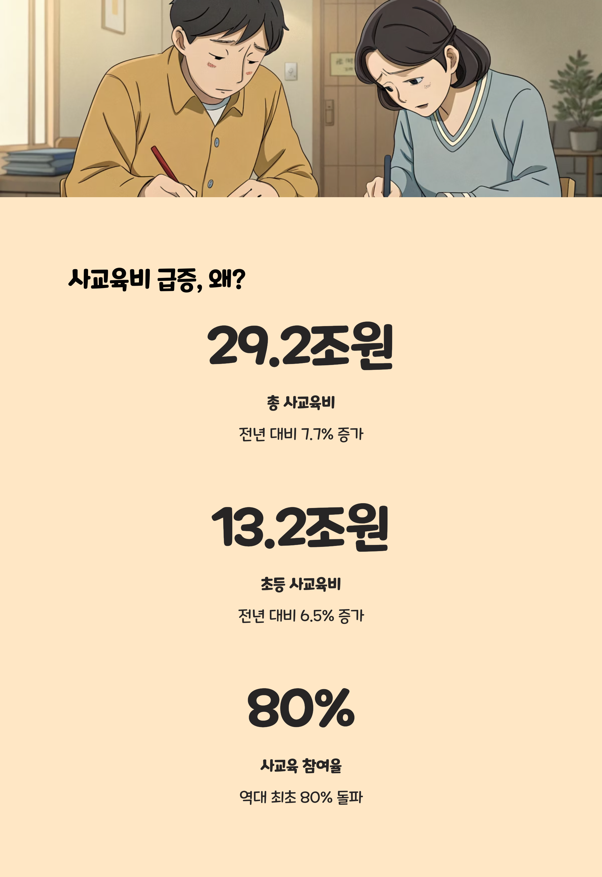 사교육비가 급증한 가장 큰 이유는 조기교육 열풍과 입시 불안감입니다.