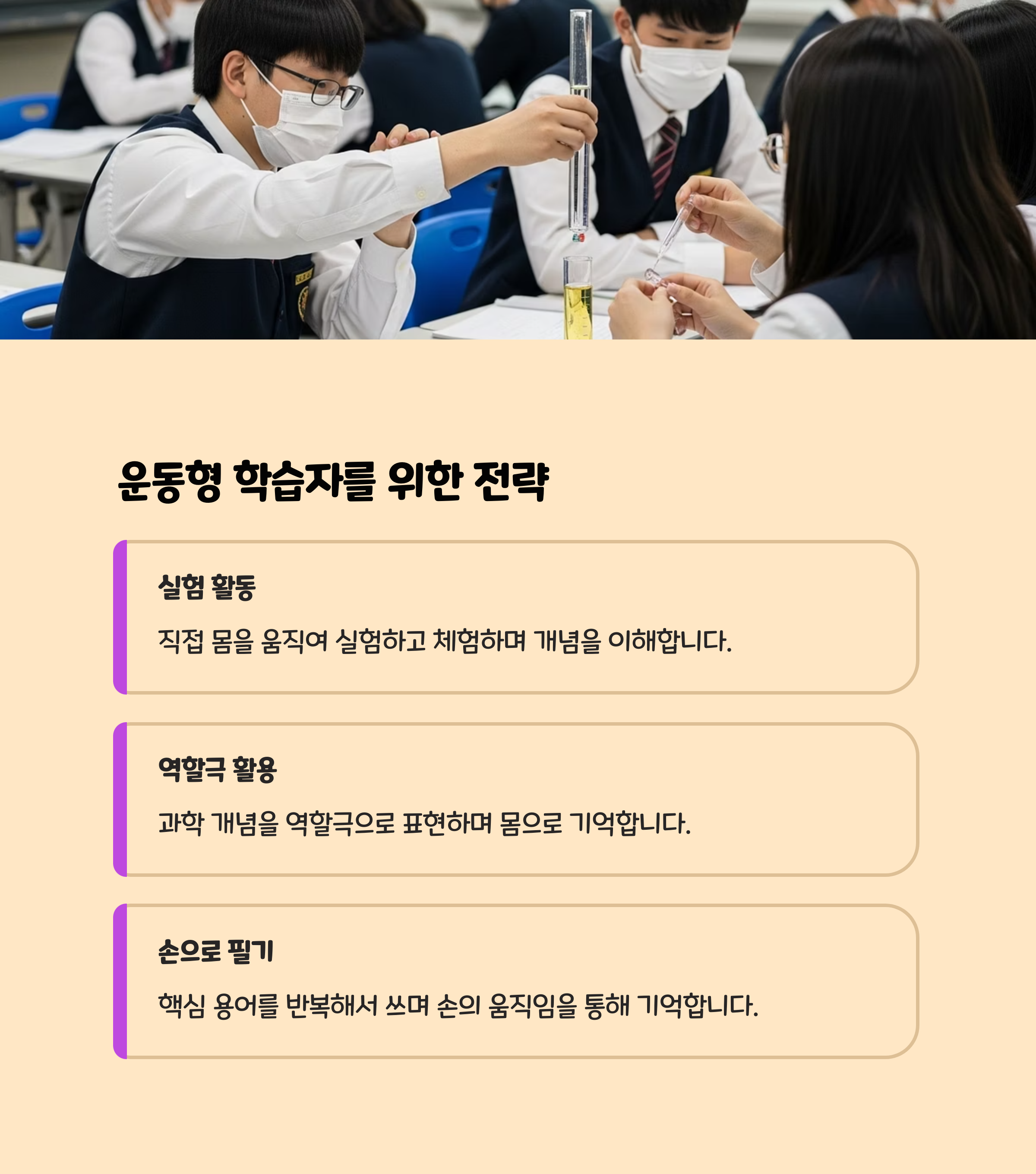 모든 학생이 같은 방식으로 공부할 필요는 없습니다. 시각형, 청각형, 운동형 등 자신의 학습 스타일에 맞는 방법을 찾는 것이 중요합니다.