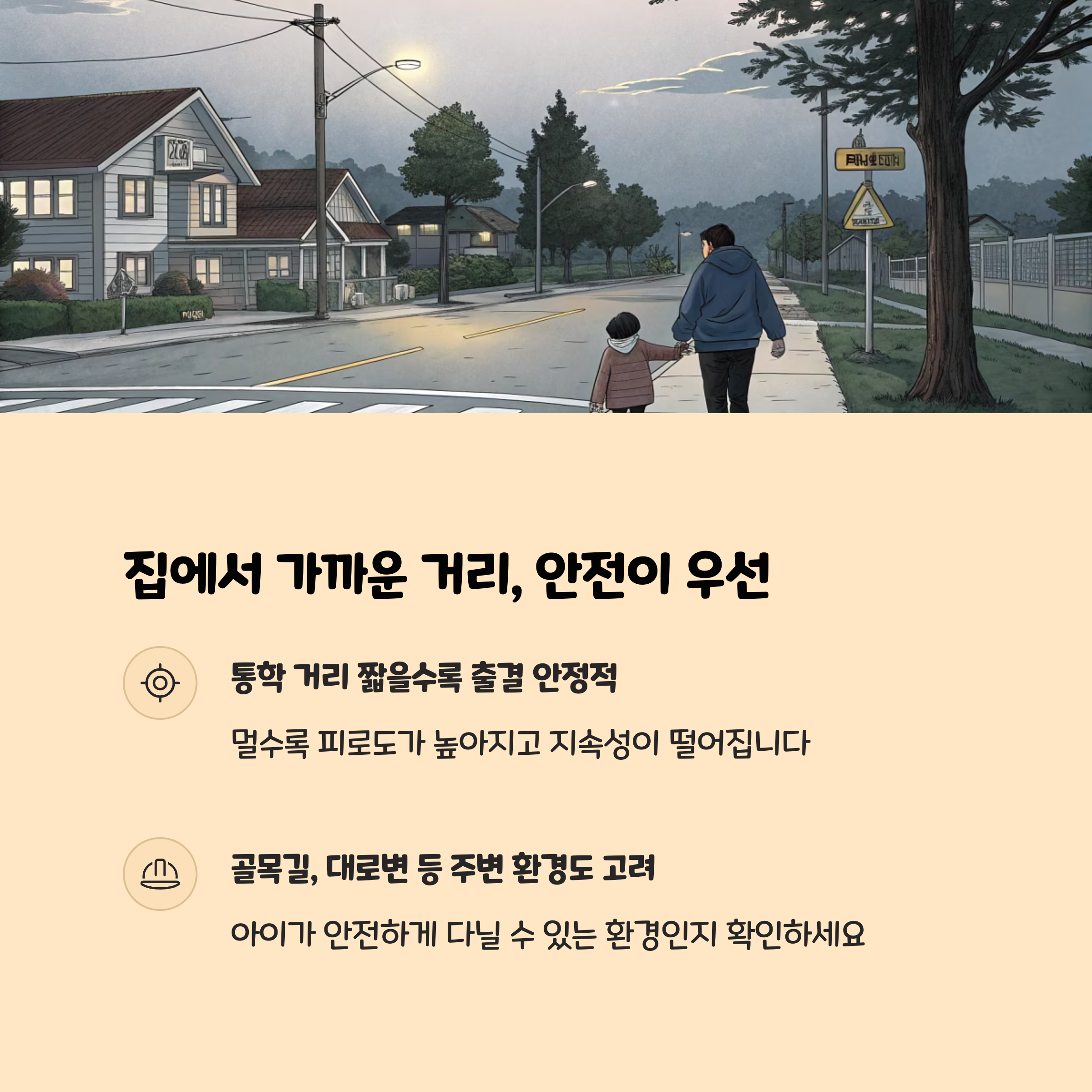 - 거리와 안전을 고려해 등하원이 편리한 곳을 선택하세요.