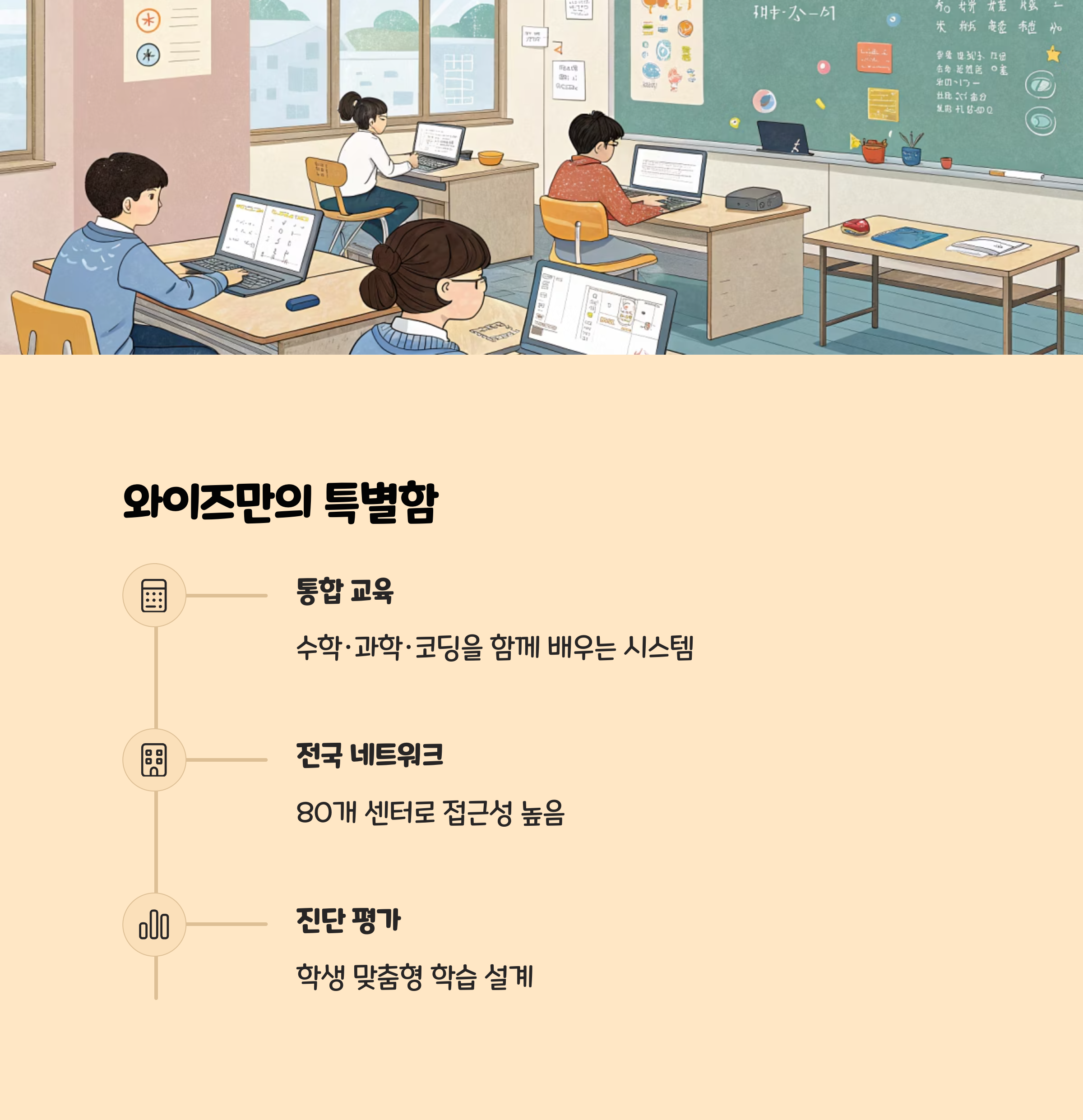 전국적으로 센터가 많은 학원(예: 와이즈만, 한생연 등)은 집 근처에서 쉽게 찾을 수 있습니다.