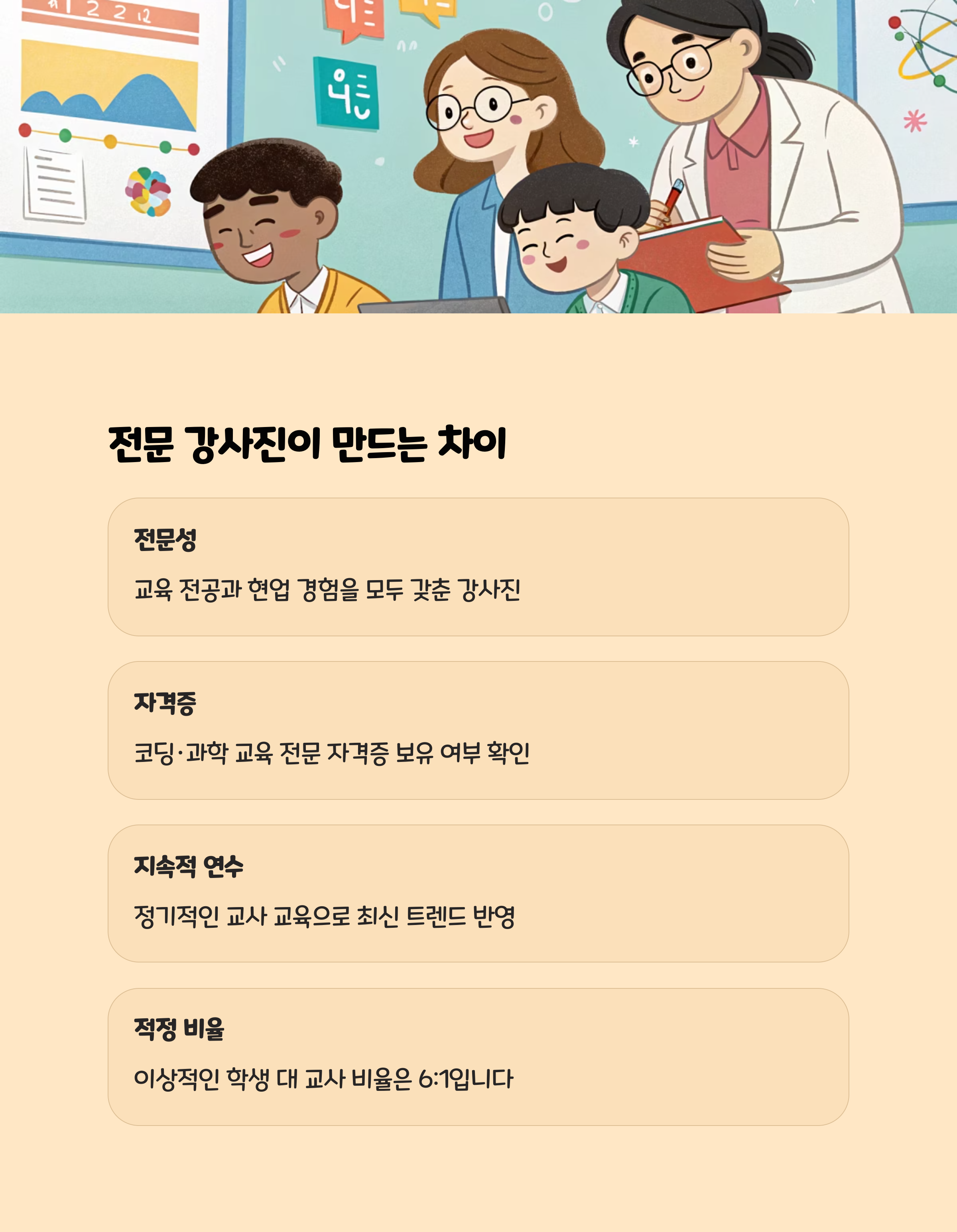 다양한 주제와 단계별 프로그램이 있는지, STEAM 융합 교육이 이루어지는지 확인이 필요합니다.
