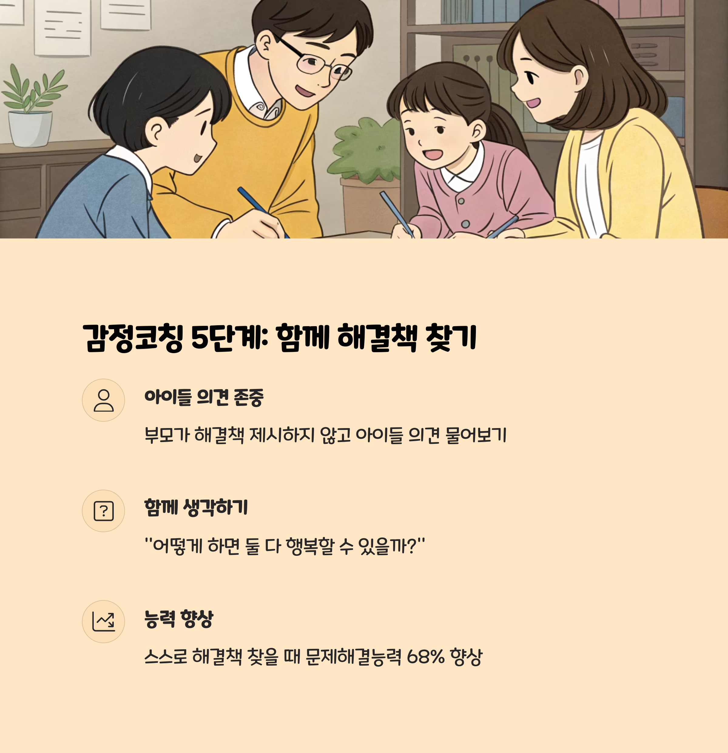 네, 감정코칭을 꾸준히 실천한 가정에서는 형제자매 간의 다툼 빈도와 강도가 눈에 띄게 줄어듭니다. 아이들은 자신의 감정을 더 잘 이해하고, 상대방의 입장도 고려하게 되면서, 이전보다 평화롭게 문제를 해결하는 능력이 향상됩니다. 이는 실제 연구와 부모들의 경험담에서도 확인된 결과입니다.