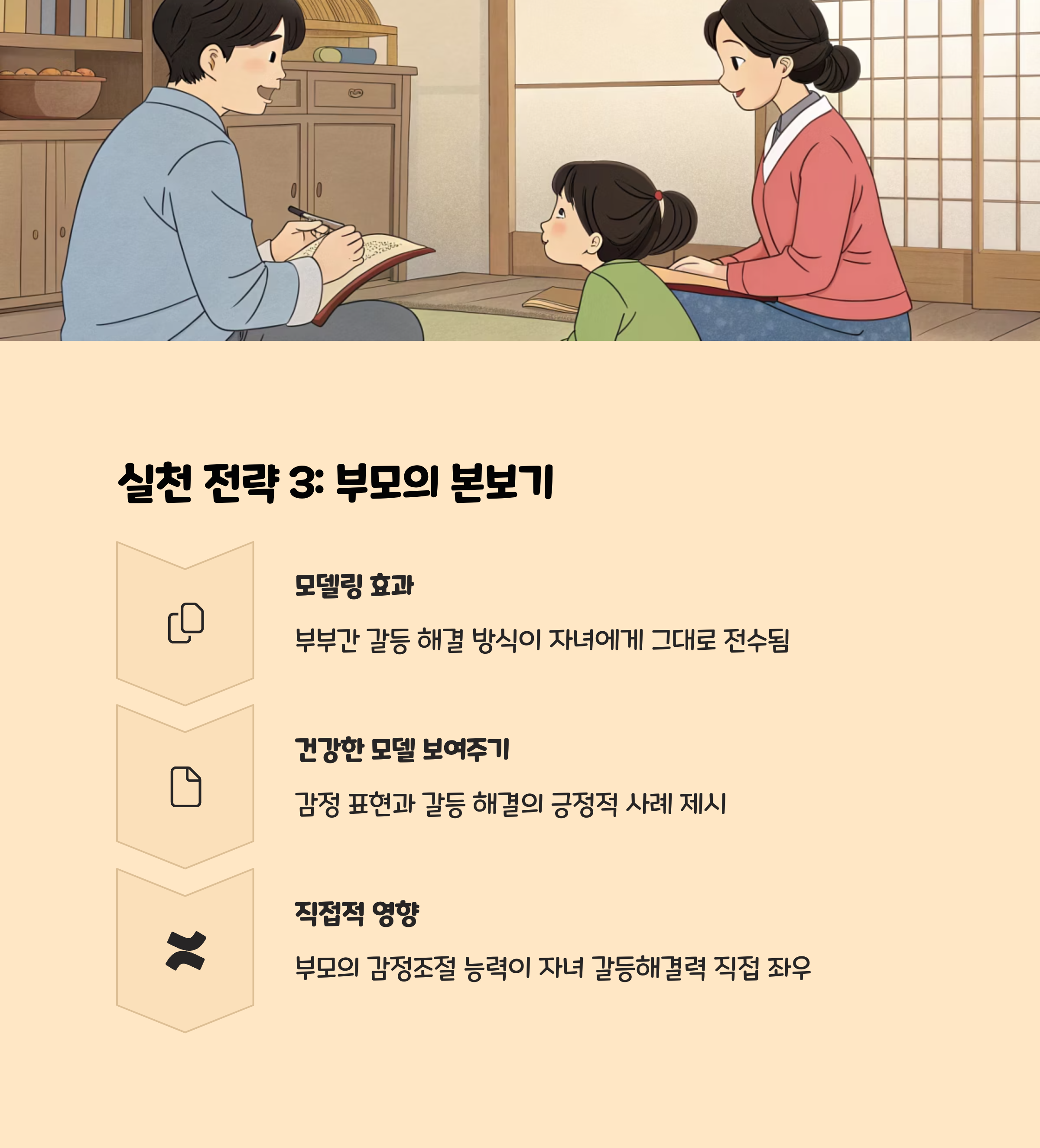 - 부모의 본보기: 부모가 차분히 대화로 갈등을 해결하는 모습을 아이들에게 보여주면, 아이들도 자연스럽게 배웁니다.