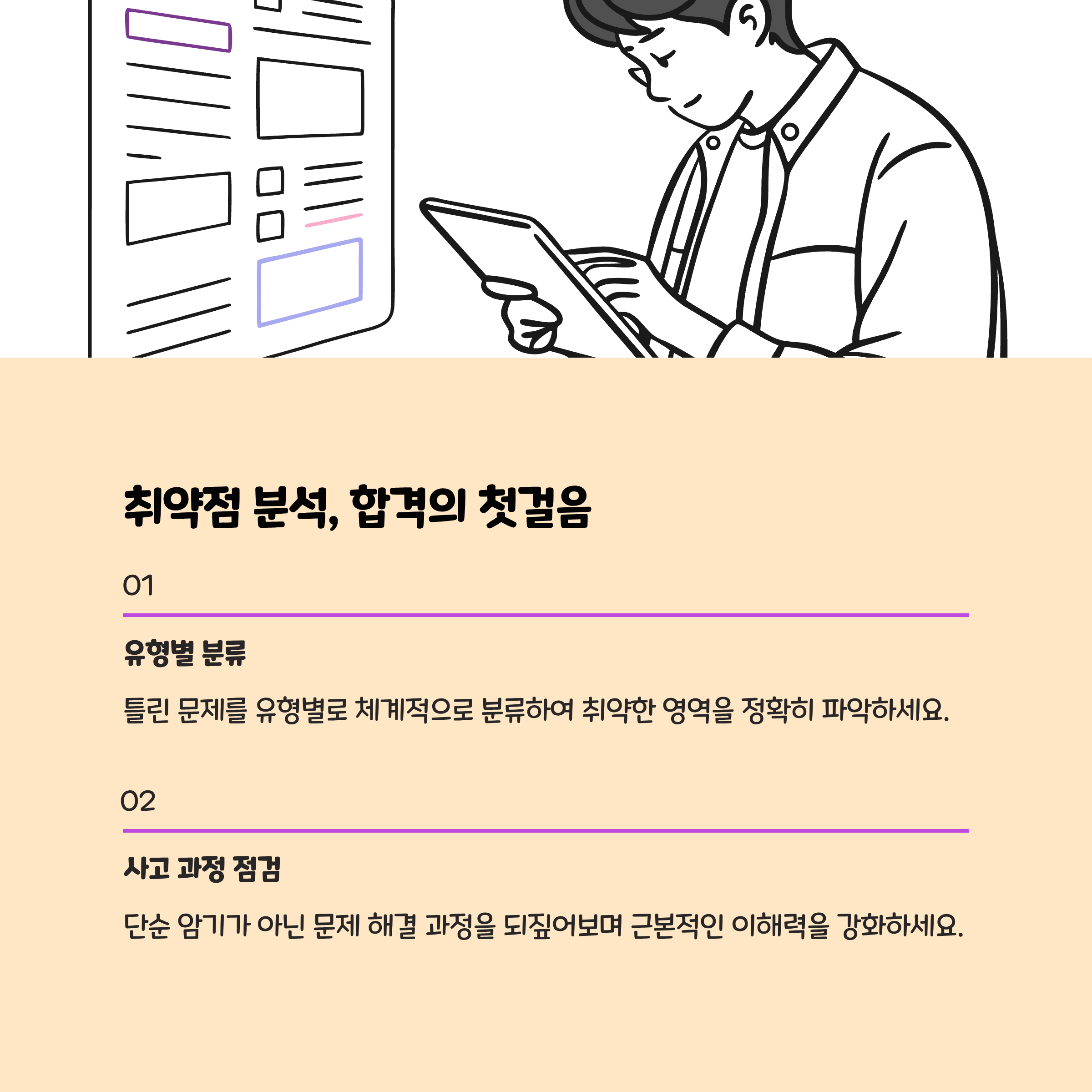 무차별적 문제풀이와 단순 암기에 치중하는 점이 많습니다. 이를 막으려면 정확한 실력 진단 후 약점을 보완하는 맞춤형 전략을 세워야 하며, 오답 분석과 이해 중심 학습을 꾸준히 실천하는 것이 실수 예방의 핵심입니다.