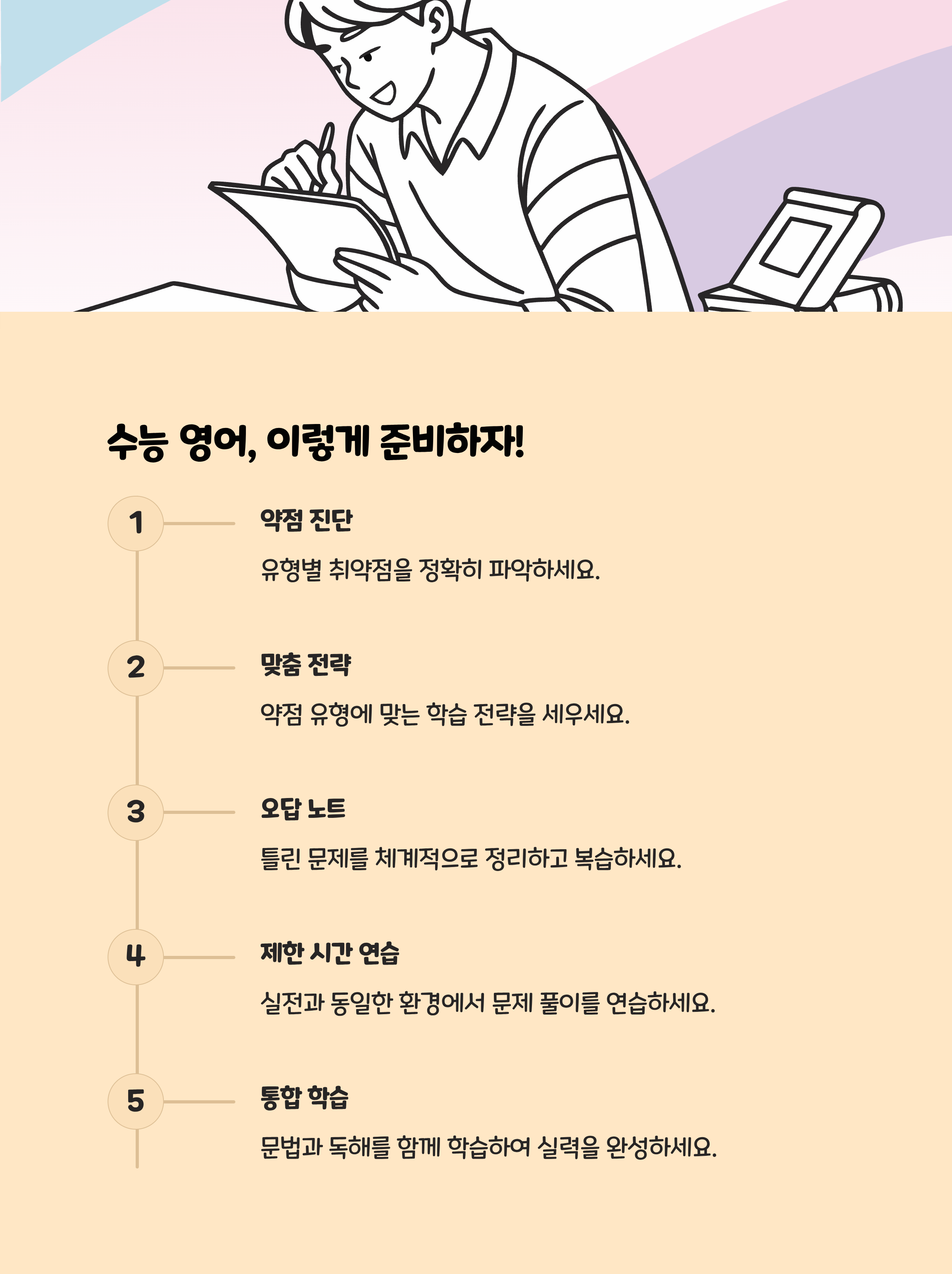 | 어법·어휘 | 문장 내 문법 요소 정확히 이해 | 기출문제 반복 풀이 + 오답 분석 |