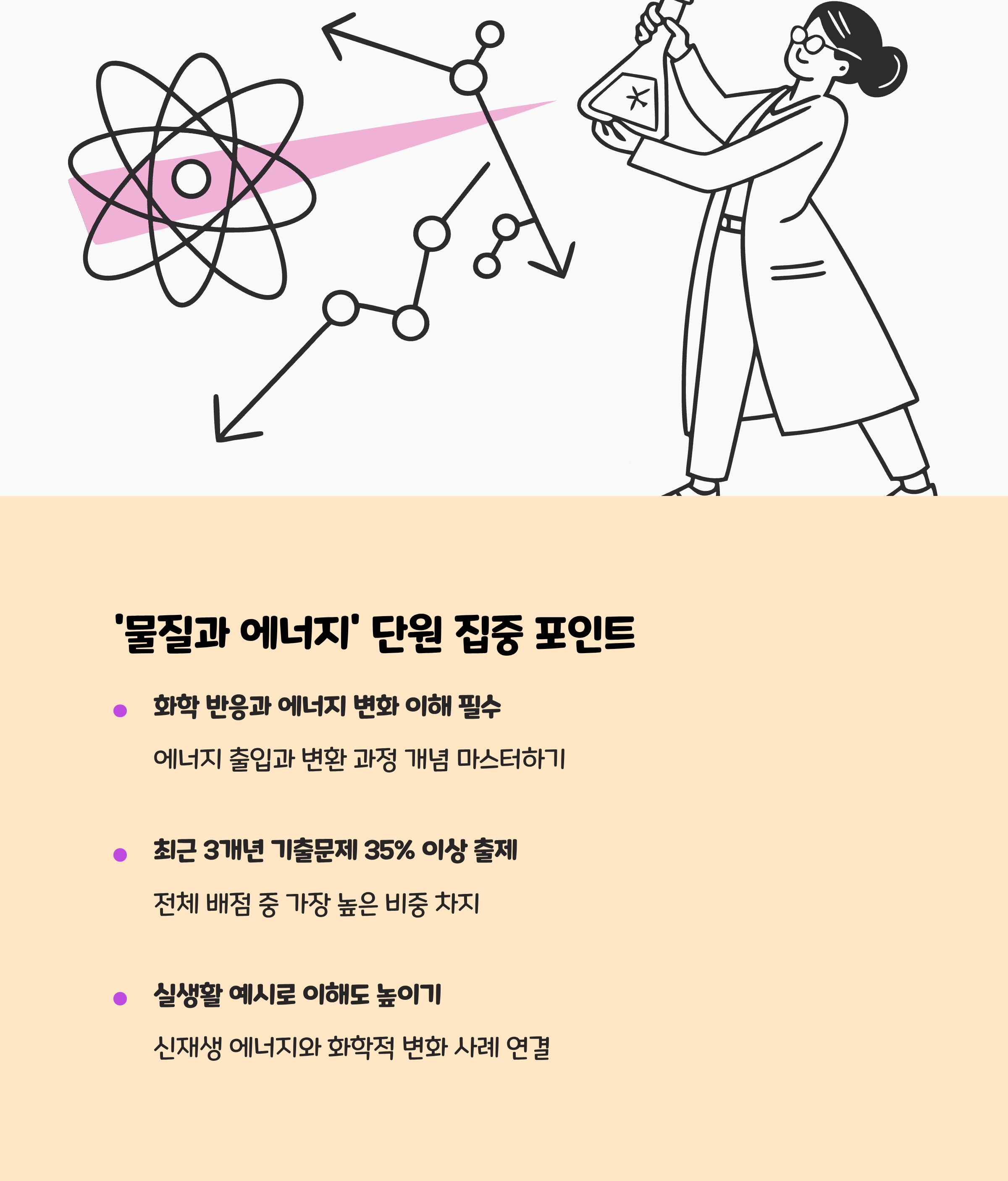 최근 대학수학능력시험에서 통합과학은 개념의 단편적인 암기를 넘어 문제 해결 능력과 창의적 사고를 평가하는 방향으로 출제되고 있습니다. 특히 2024~2025년 시험 분석 결과에 따르면, ‘물질과 에너지’ 단원과 ‘생명과 환경’ 단원에서 단원별 고난도 문항 출제 비중이 25% 이상으로 높게 나타났습니다. 따라서 이해를 바탕으로 한 개념 학습과 심화 문제풀이가 필수입니다.