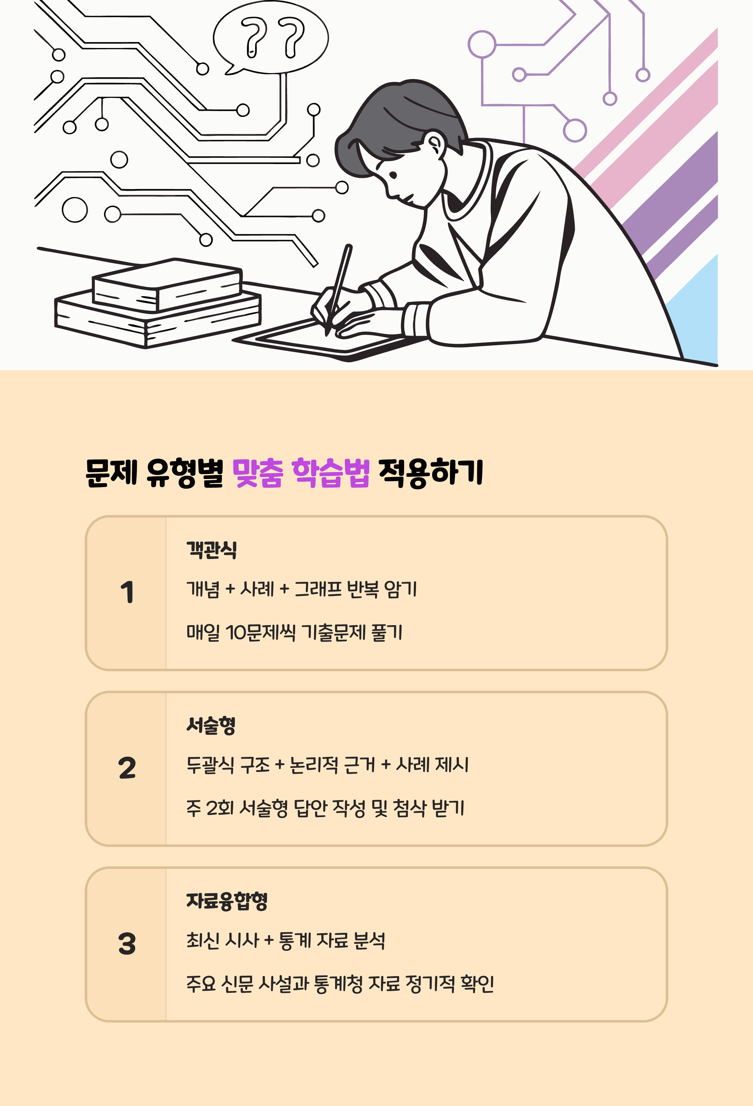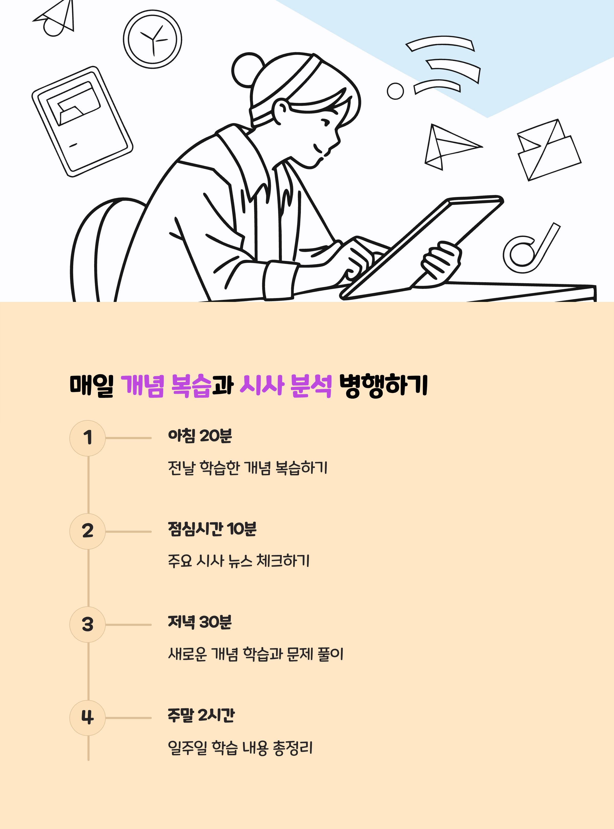 - 매일 개념 30분 복습+시사자료 20분 분석