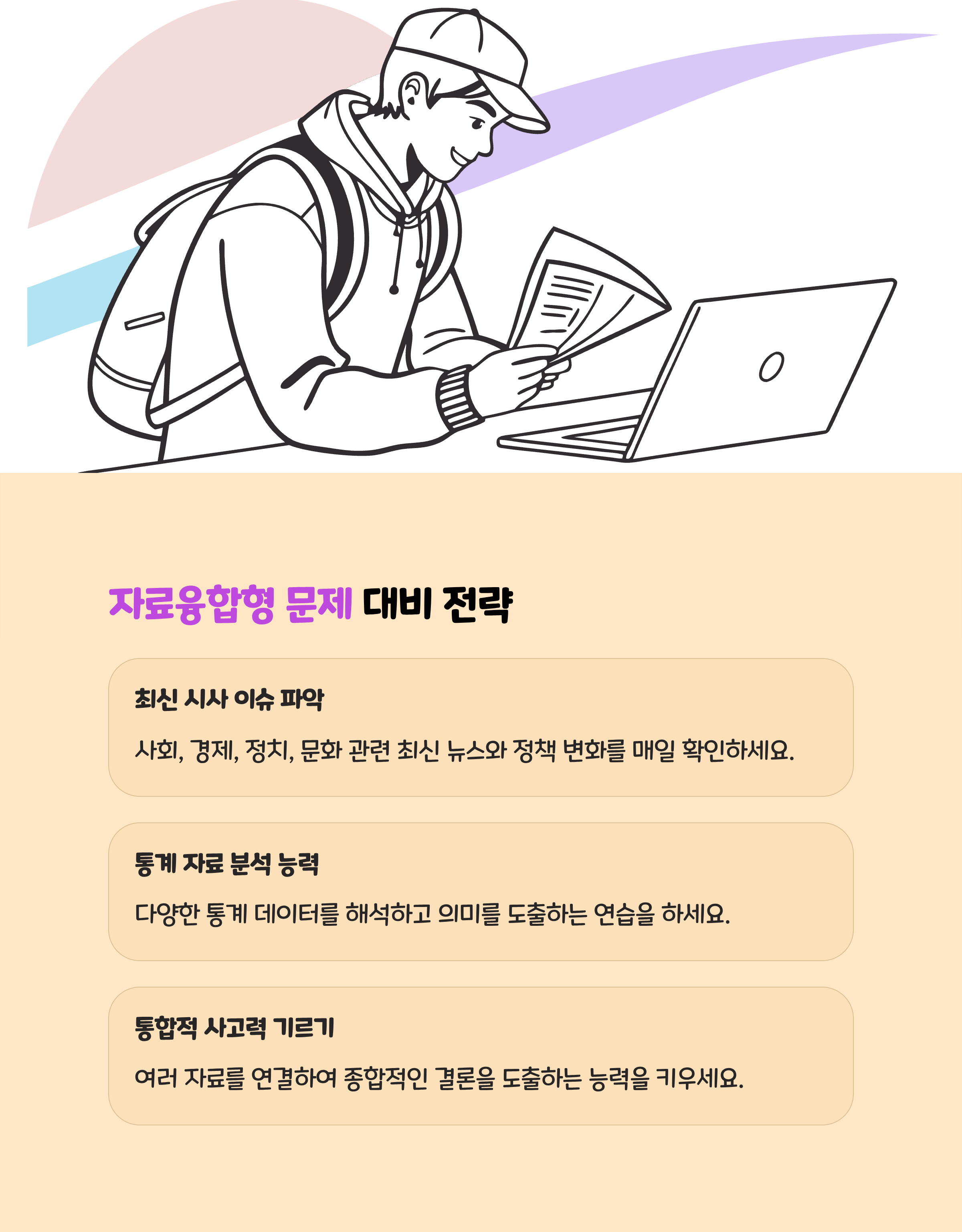 최근 기후 변화, 디지털 사회 문제 등 최신 시사 이슈를 교과 내용과 연계해 공부하면 자료융합형 문제 해결에 도움이 됩니다. 신문, 뉴스, 공식 통계자료를 꾸준히 분석하는 습관이 필요합니다.