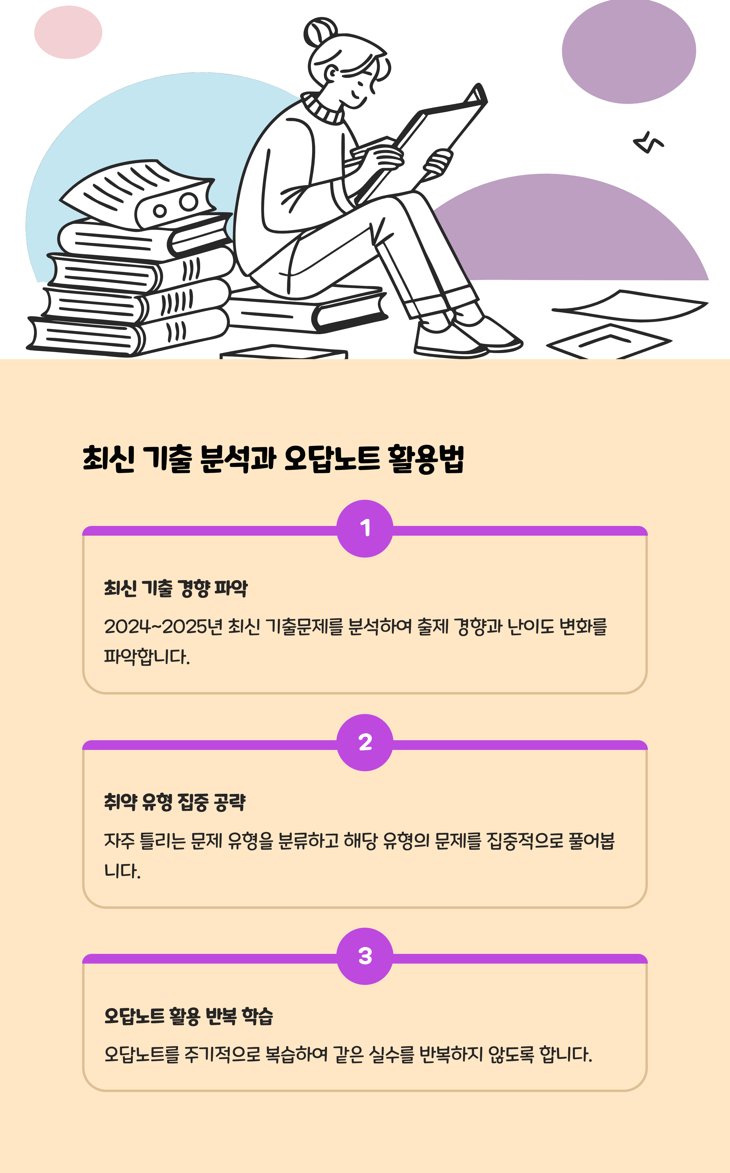- 나만의 오답노트 운영, 난이도별 시간 배분 연습