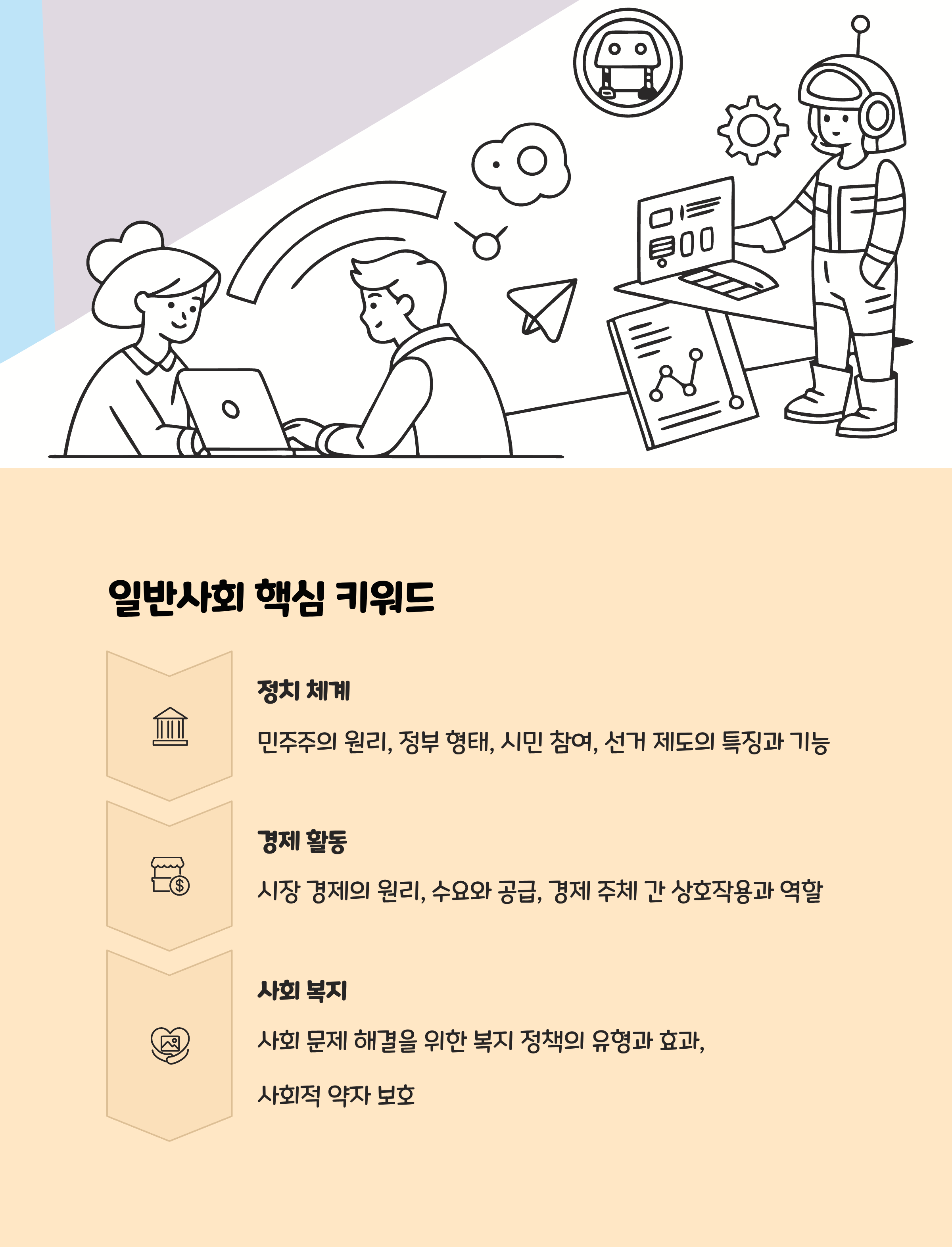 | 일반사회 | 사회 구조, 제도 | 공동체 규칙, 법적 구조 |