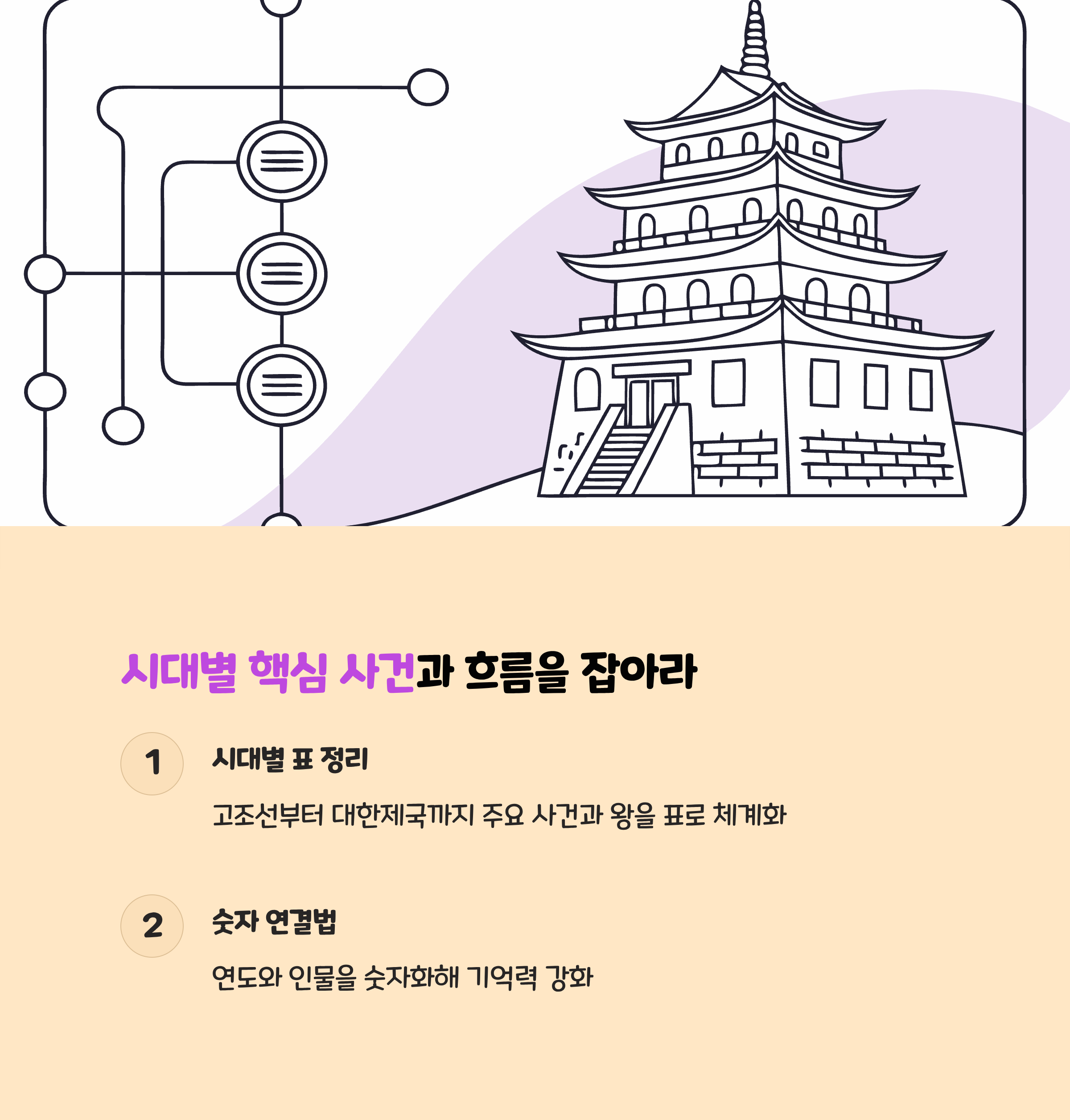 • 각 시대별 핵심 사건 요약본을 만든 뒤, “사건-연도-인물” 연결 퀴즈 반복