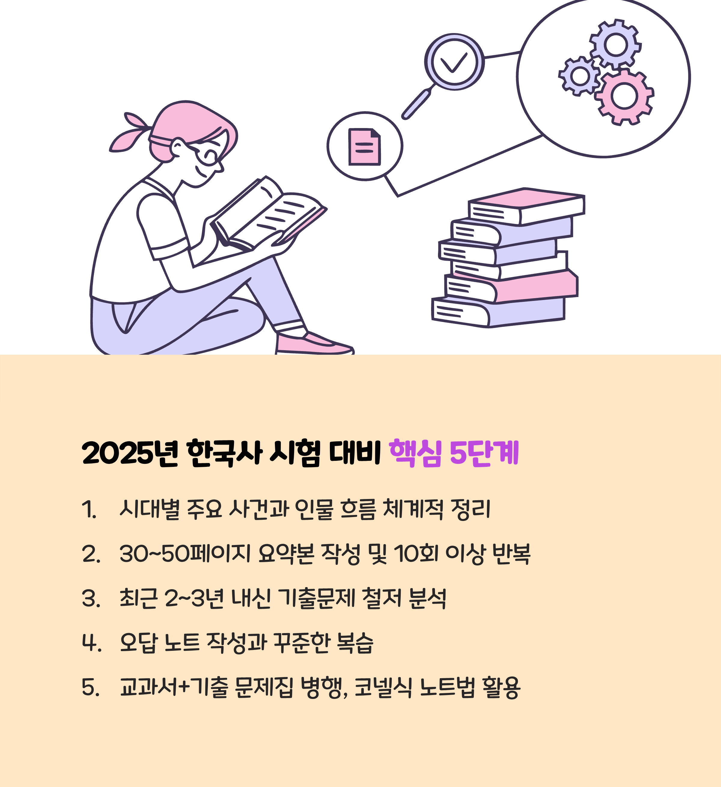시대별 흐름과 주요 사건의 원인·결과를 파악하는 것이 기본입니다. - 교과서를 정독하며, 반드시 주요 인물, 사건, 연도별 변화를 노트에 요약하세요.